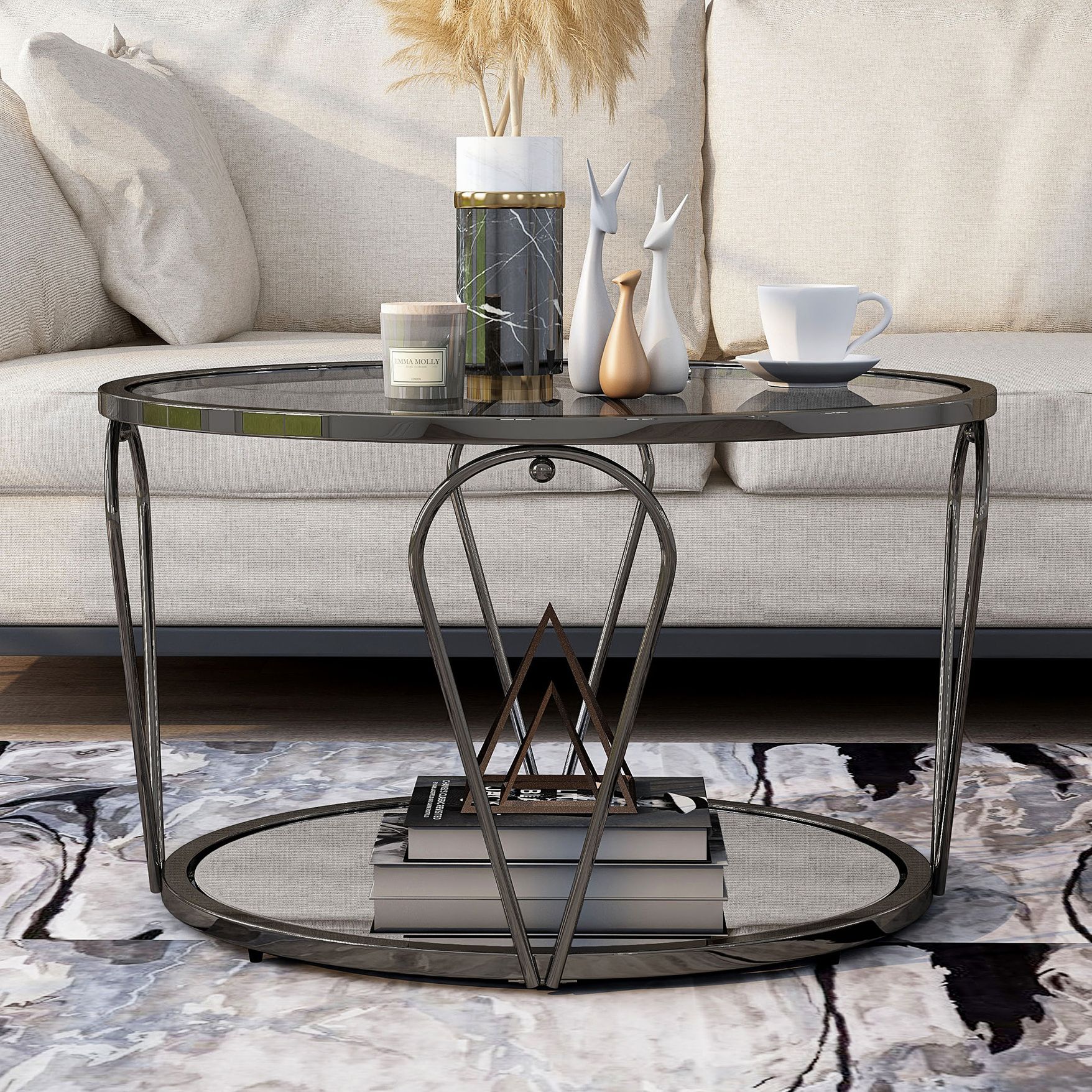 Miffa 31 1/4" Wide Black Nickel and Gray Glass Coffee Table