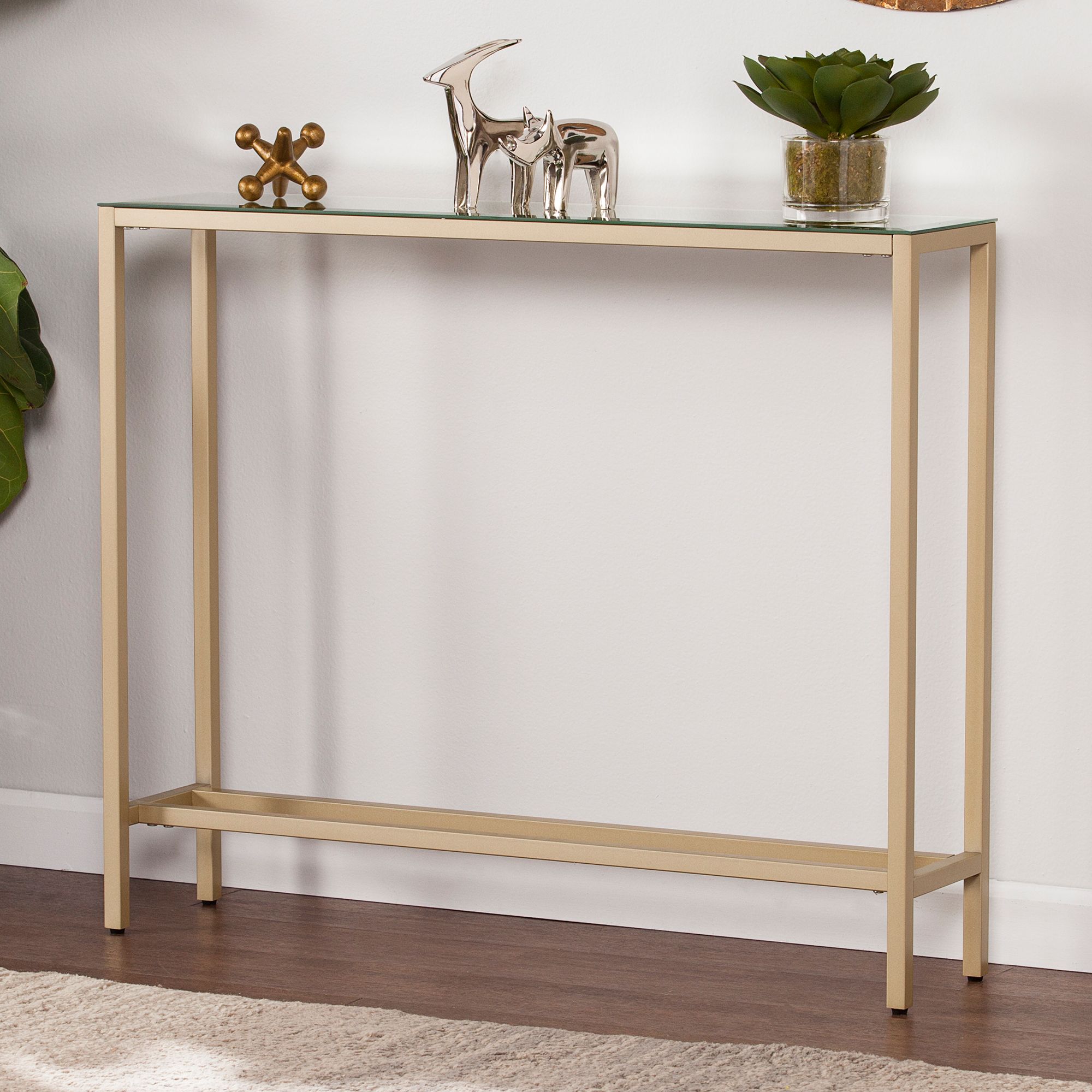 Darrin 36" Wide Mirrored Gold Iron Narrow Console Table