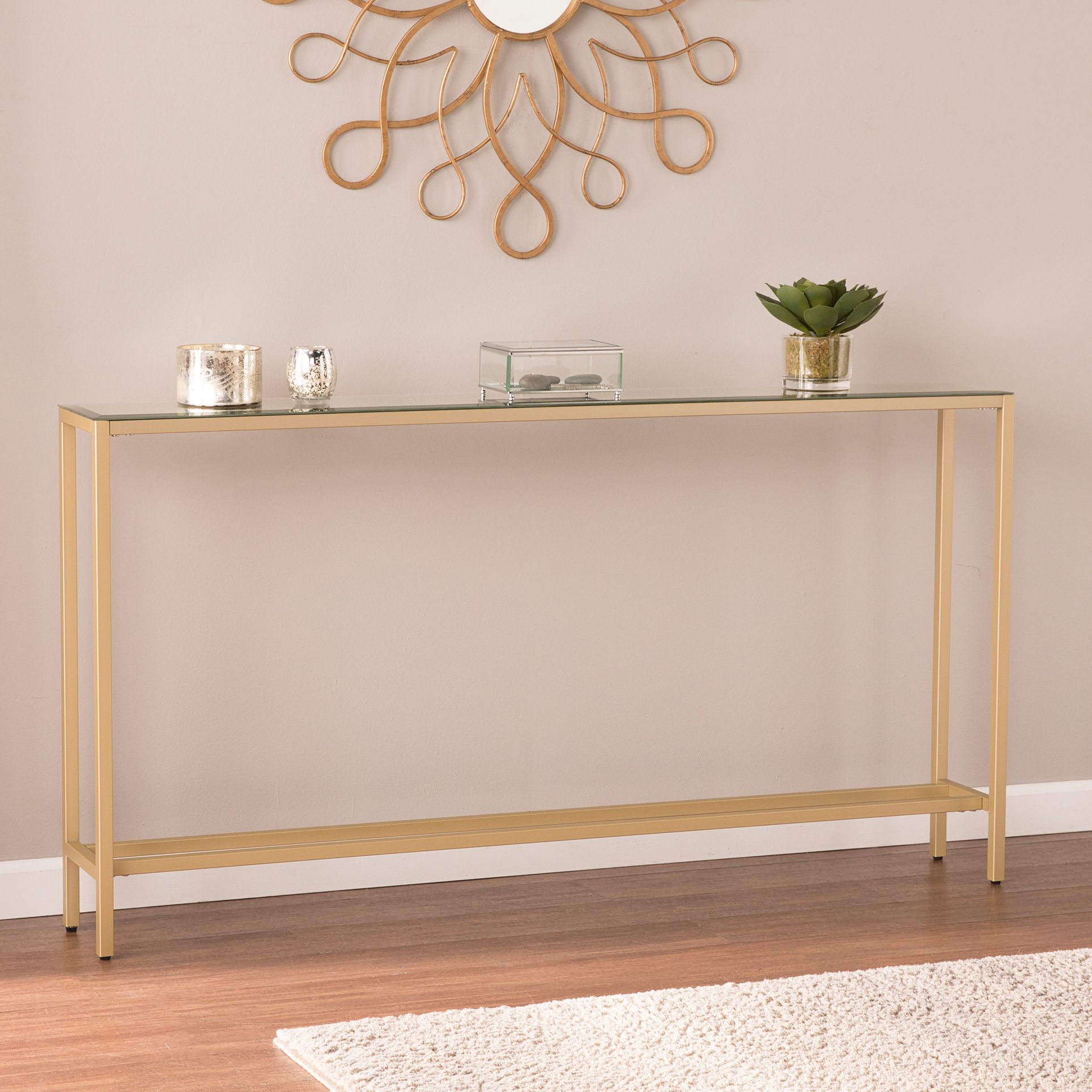 Darrin 56" Wide Mirrored Gold Iron Narrow Console Table