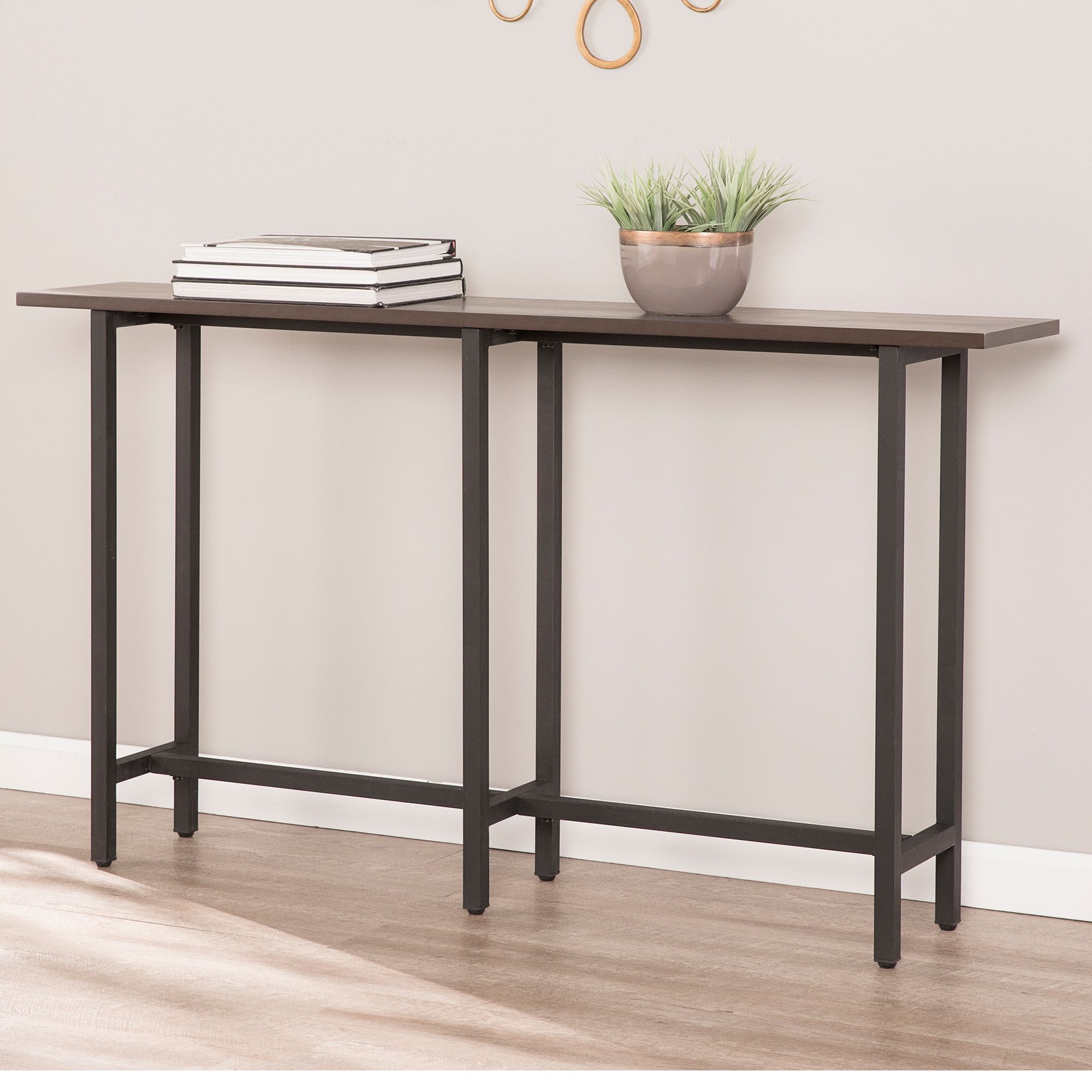 Hendry 54"W Espresso Wood Black Iron Narrow Console Table