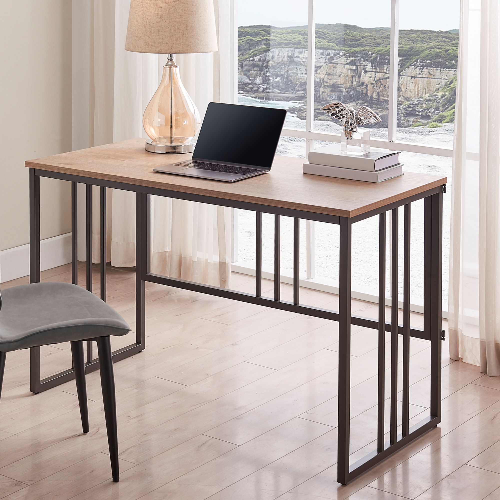 Lincoln 48" Wide White Oak Gunmetal Rectangular Desk