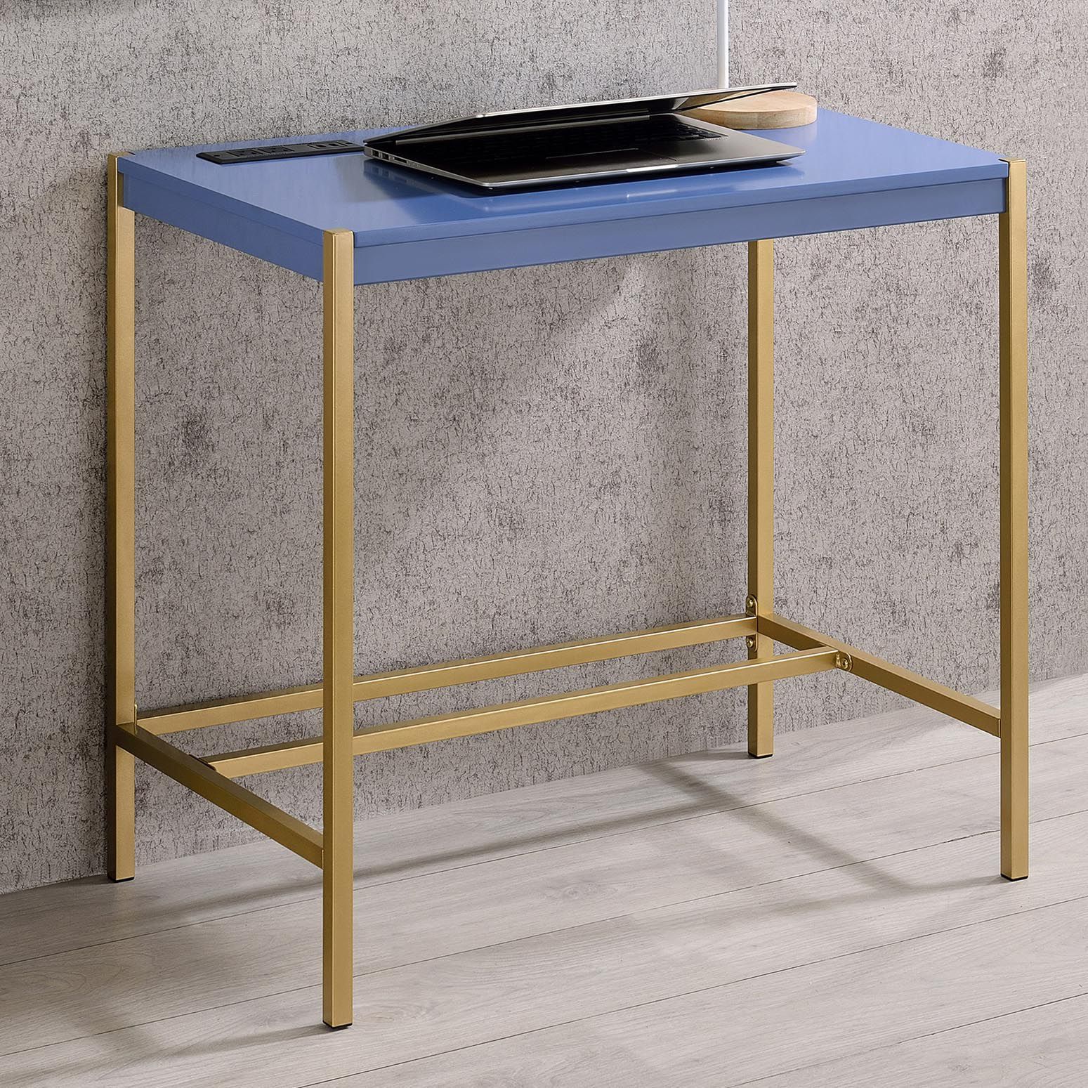 Nevinna 30"W Gold and Aruba Blue Writing Desk with USB Port