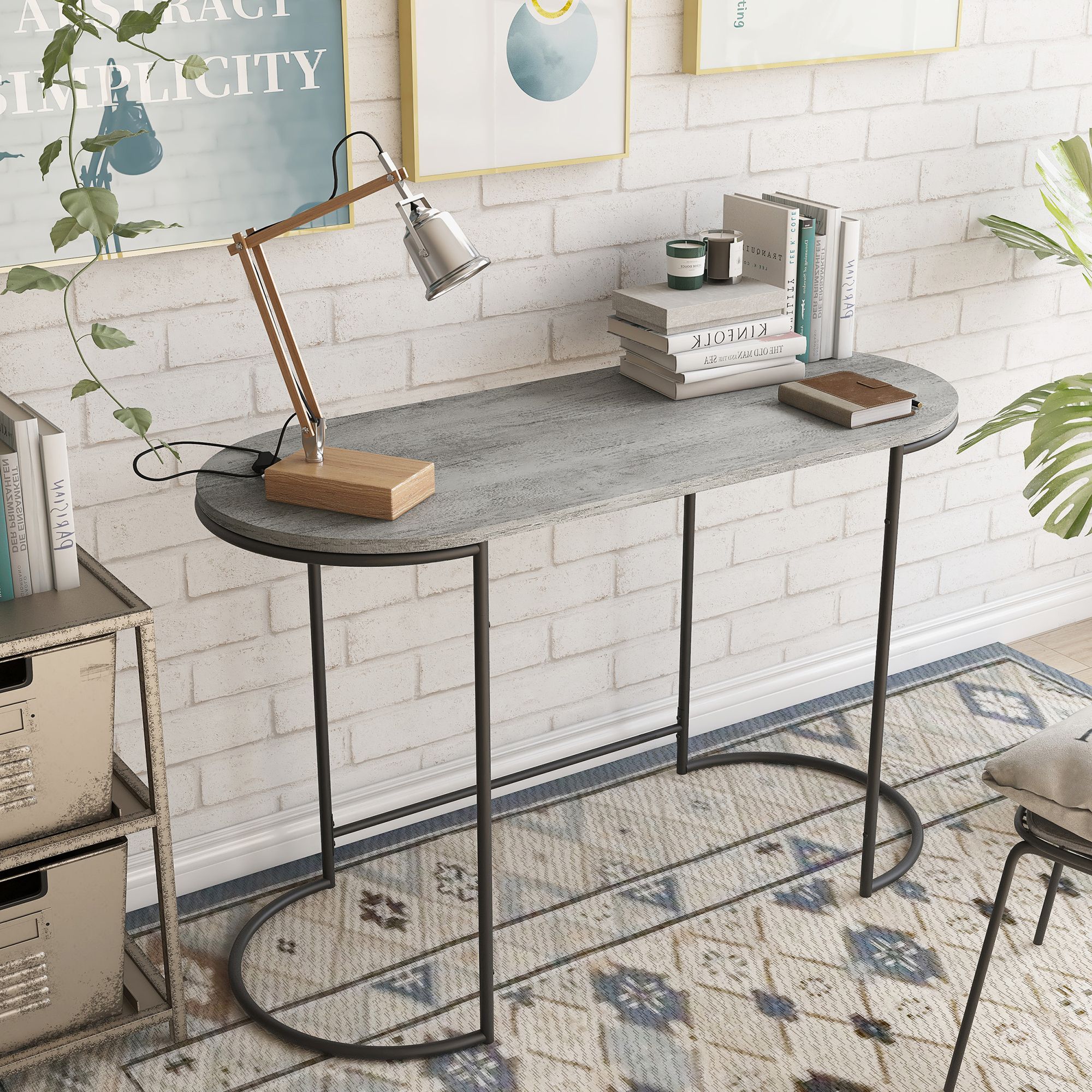 Pendrie 47 1/4" Wide Black and Gray Oval Writing Desk