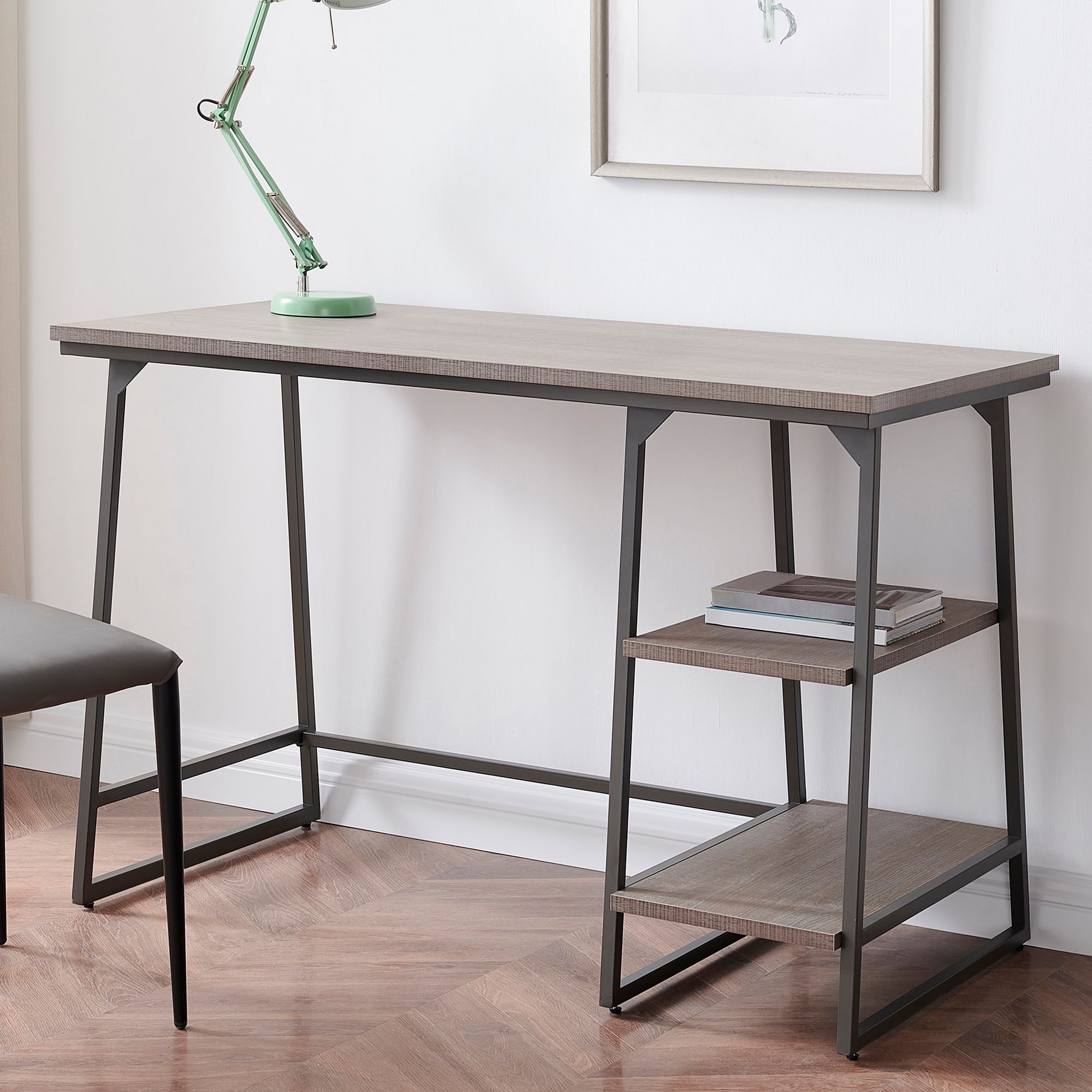 Tyberton 44" Wide Brown Wood and Steel 4-Shelf Computer Writing Desk