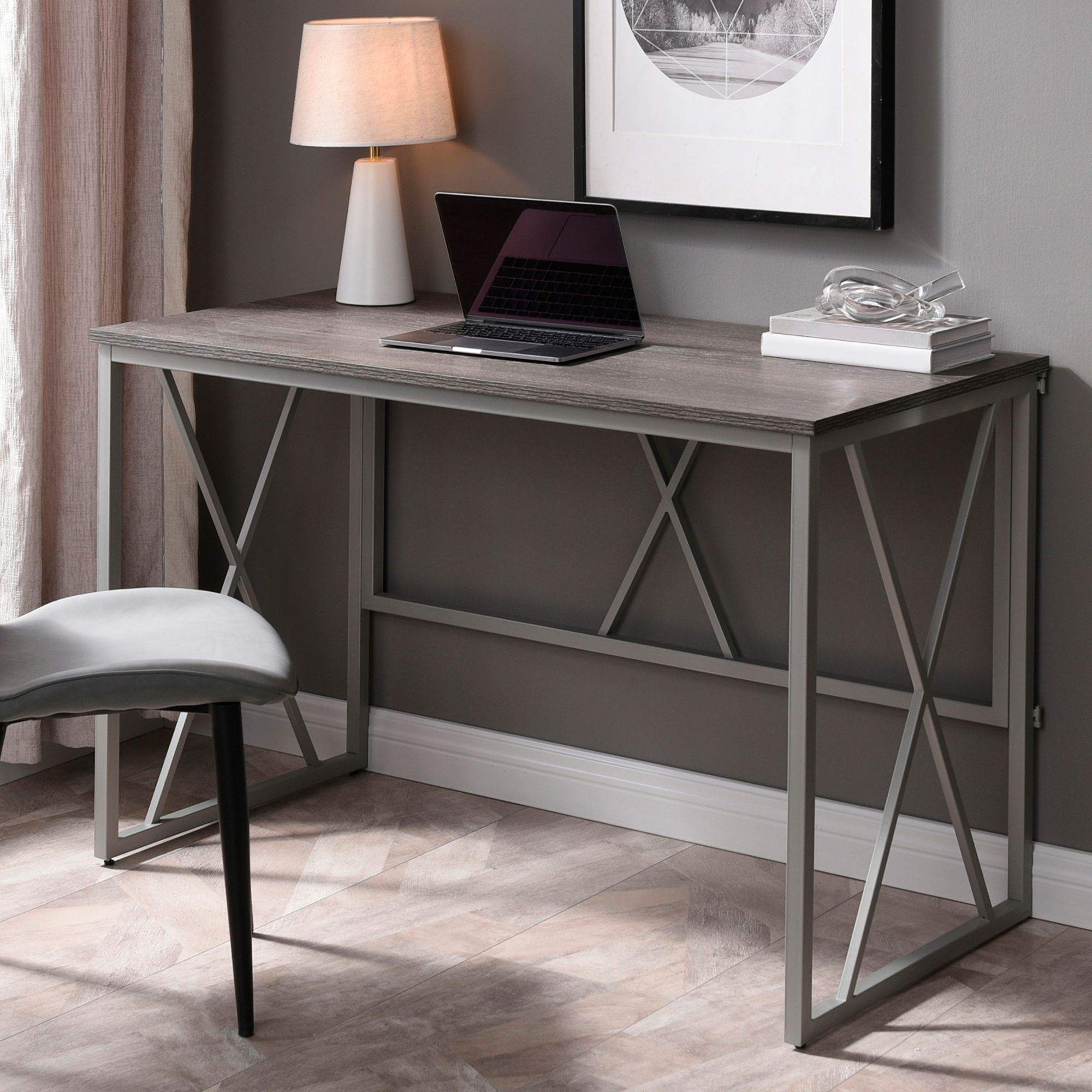 Zavies 47 1/4" Wide Gray Wood Writing Desk with Chair