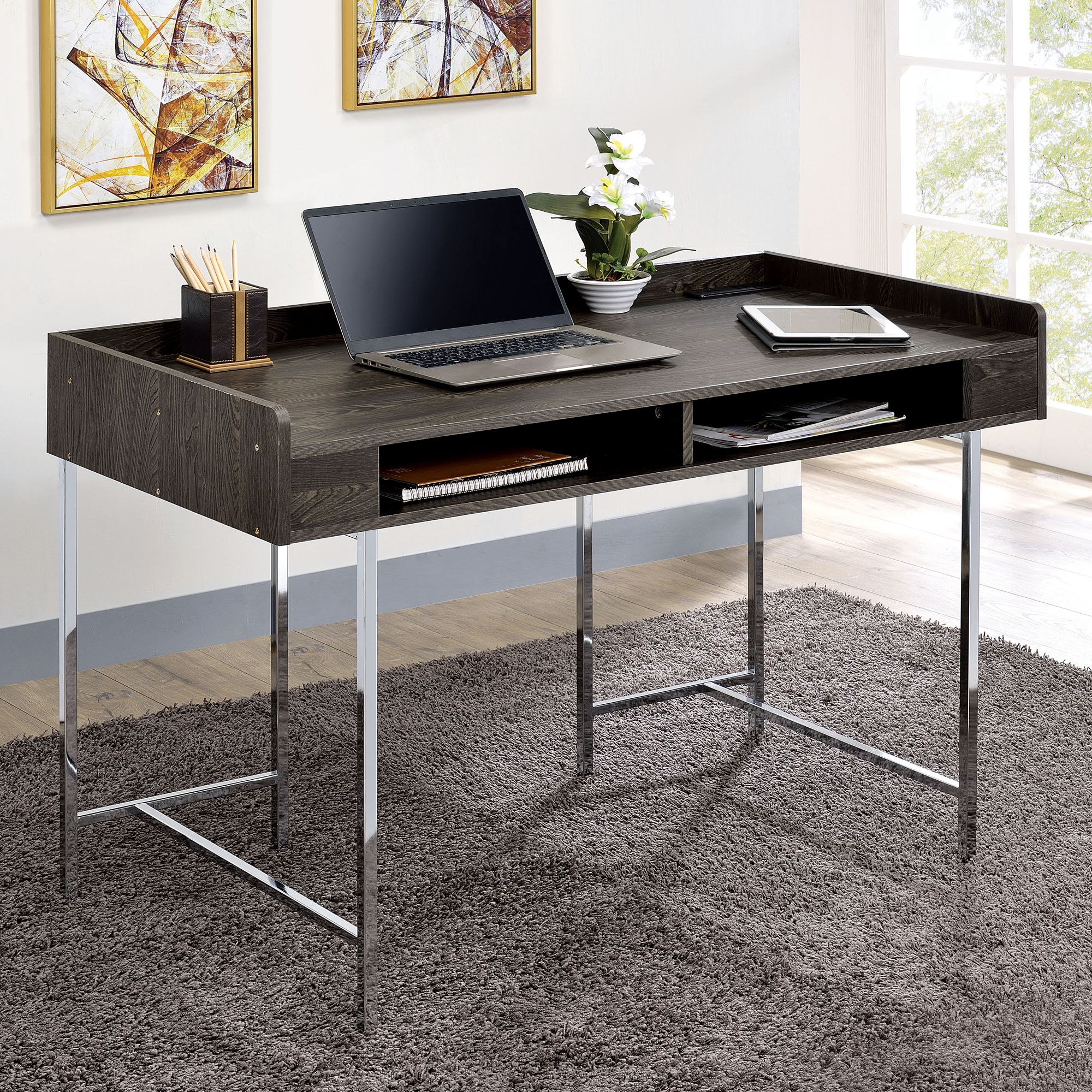 Dillon Polished Stainless Steel and Gray Desk