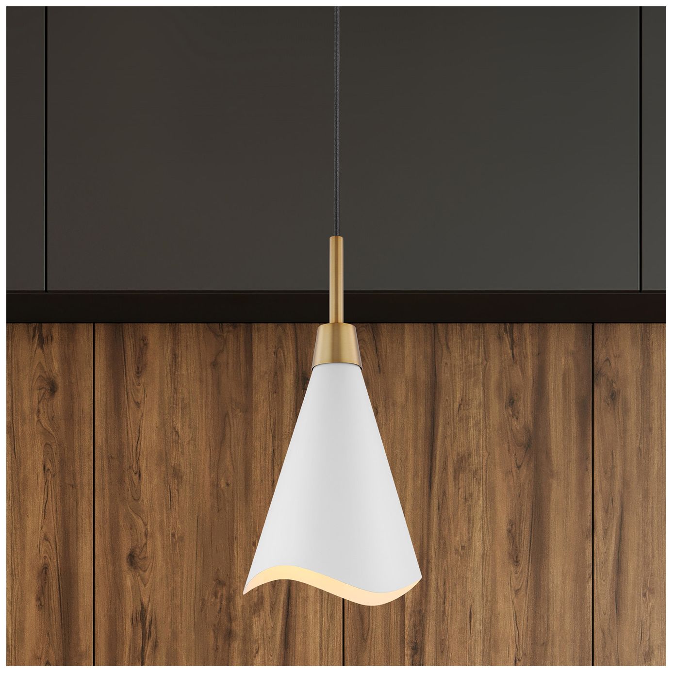 Tango; 1 Light; Small Pendant; Matte White with Burnished Brass