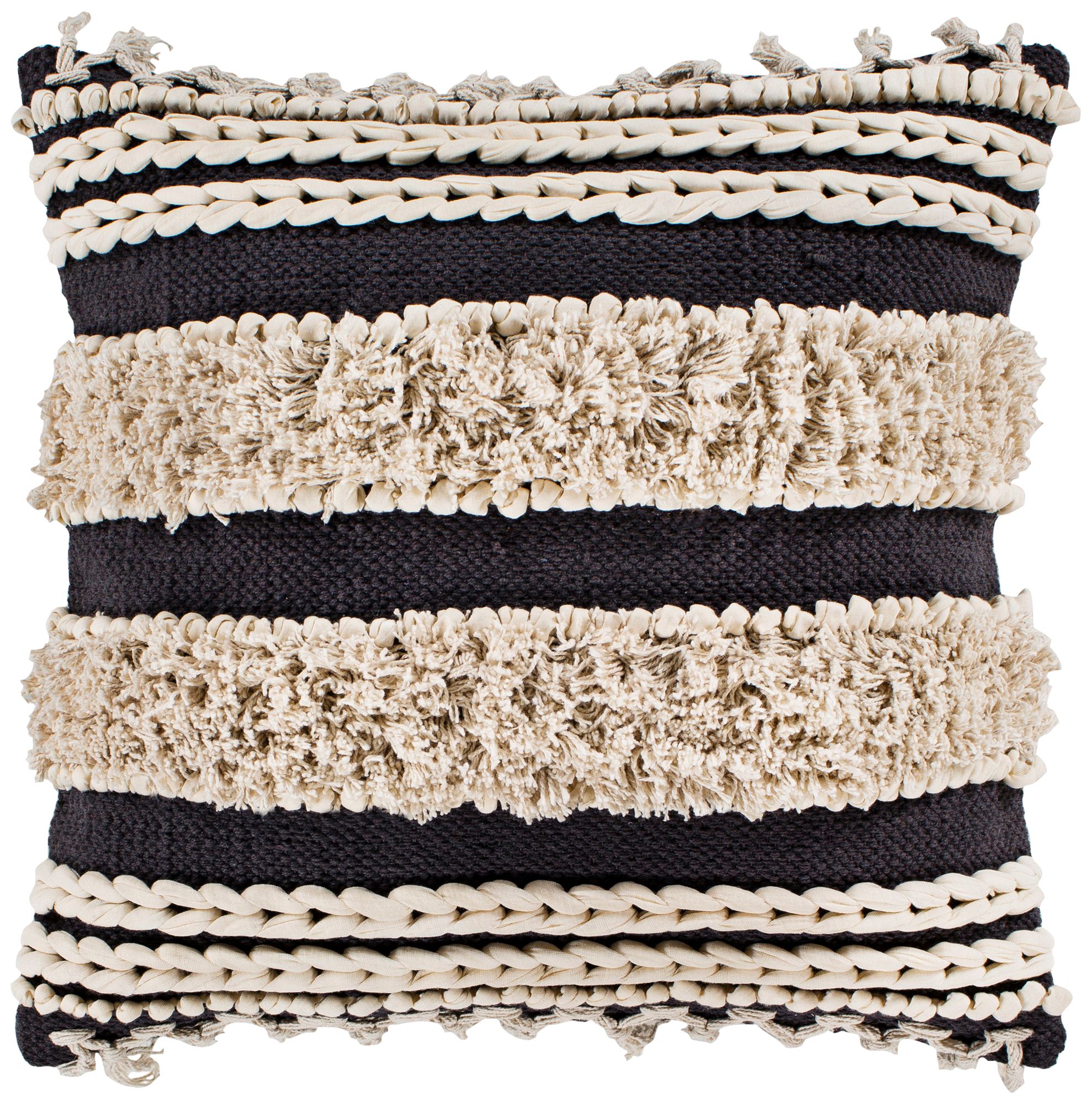 Surya Trenza Light Gray Black 22" Square Decorative Pillow