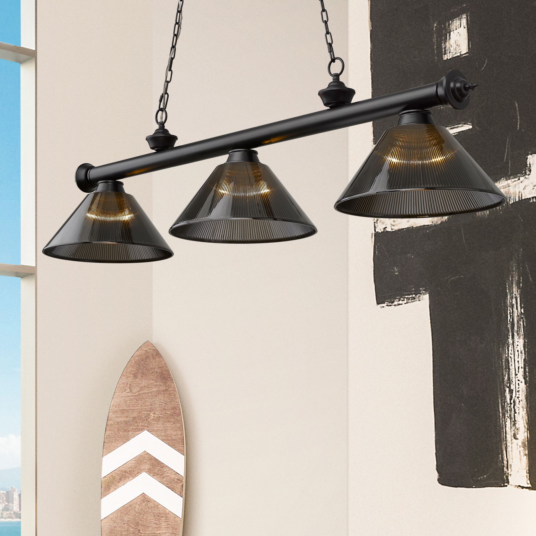 Shark 60" Wide Matte Black 3-Light Billiard Pendant