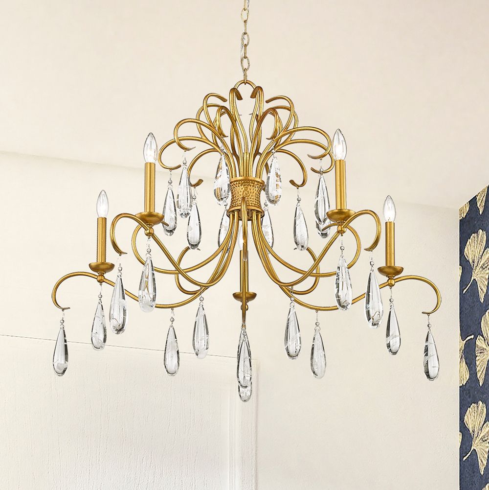 Amara 38" Wide Gilded Gold Crystal 5-Light Candle Chandelier