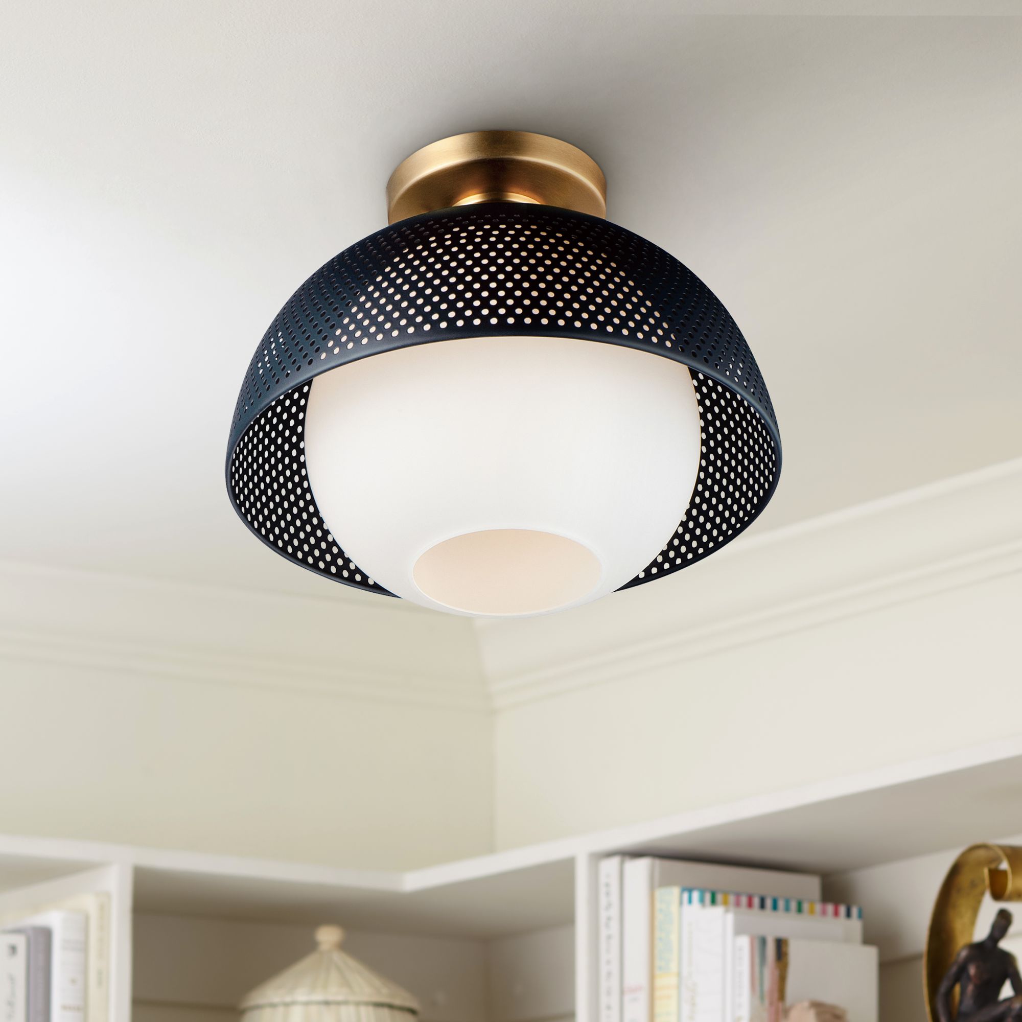 Maxim Perf 14 1/4" Wide Black and Satin Brass Ceiling Light