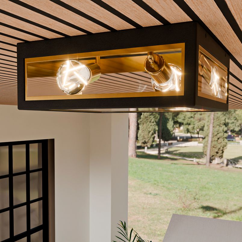 Bourbon 12" Wide Matte Black and Gold Outdoor Ceiling Light