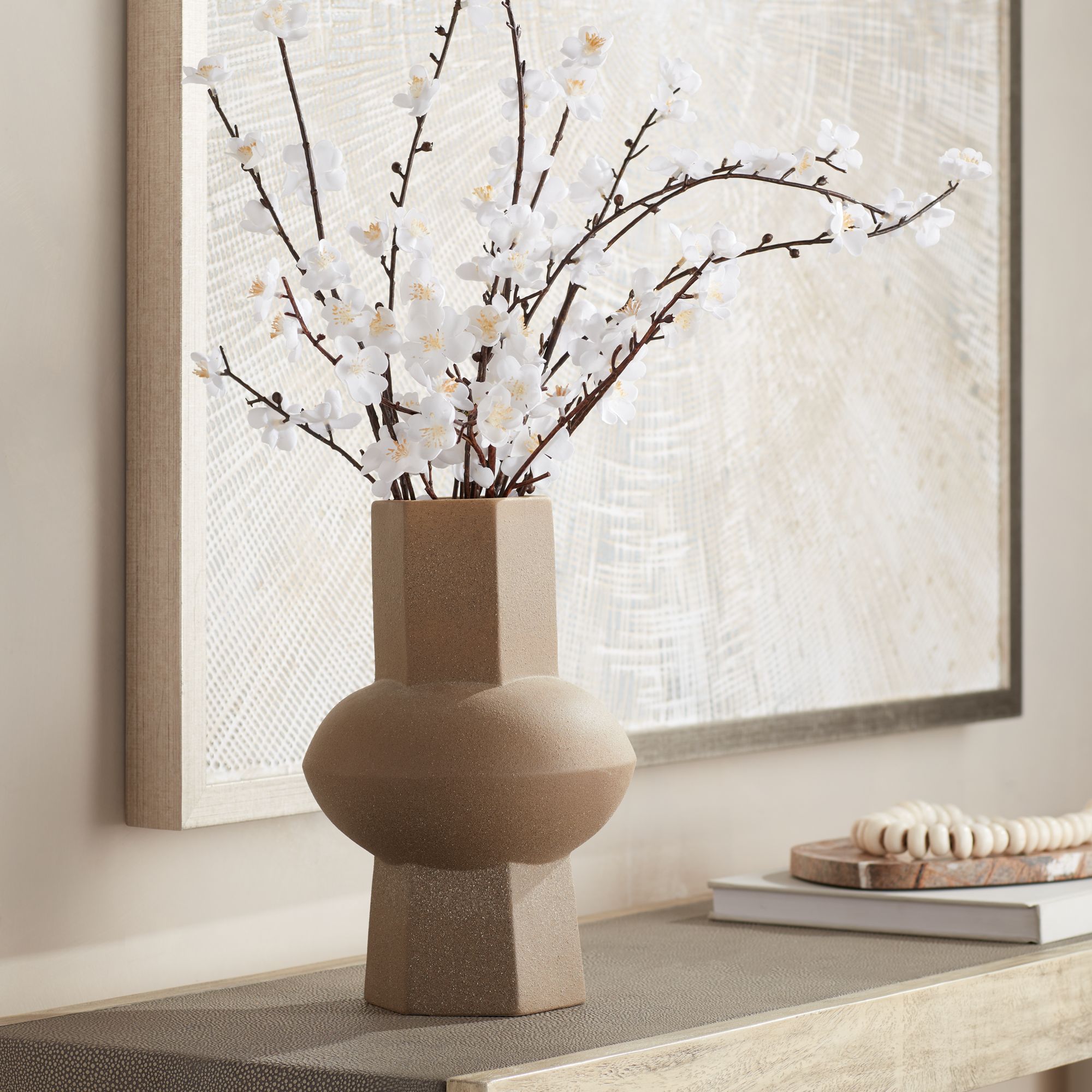 Dahlia Studios Emery 12" High Brown Modern Ceramic Hexagonal Vase