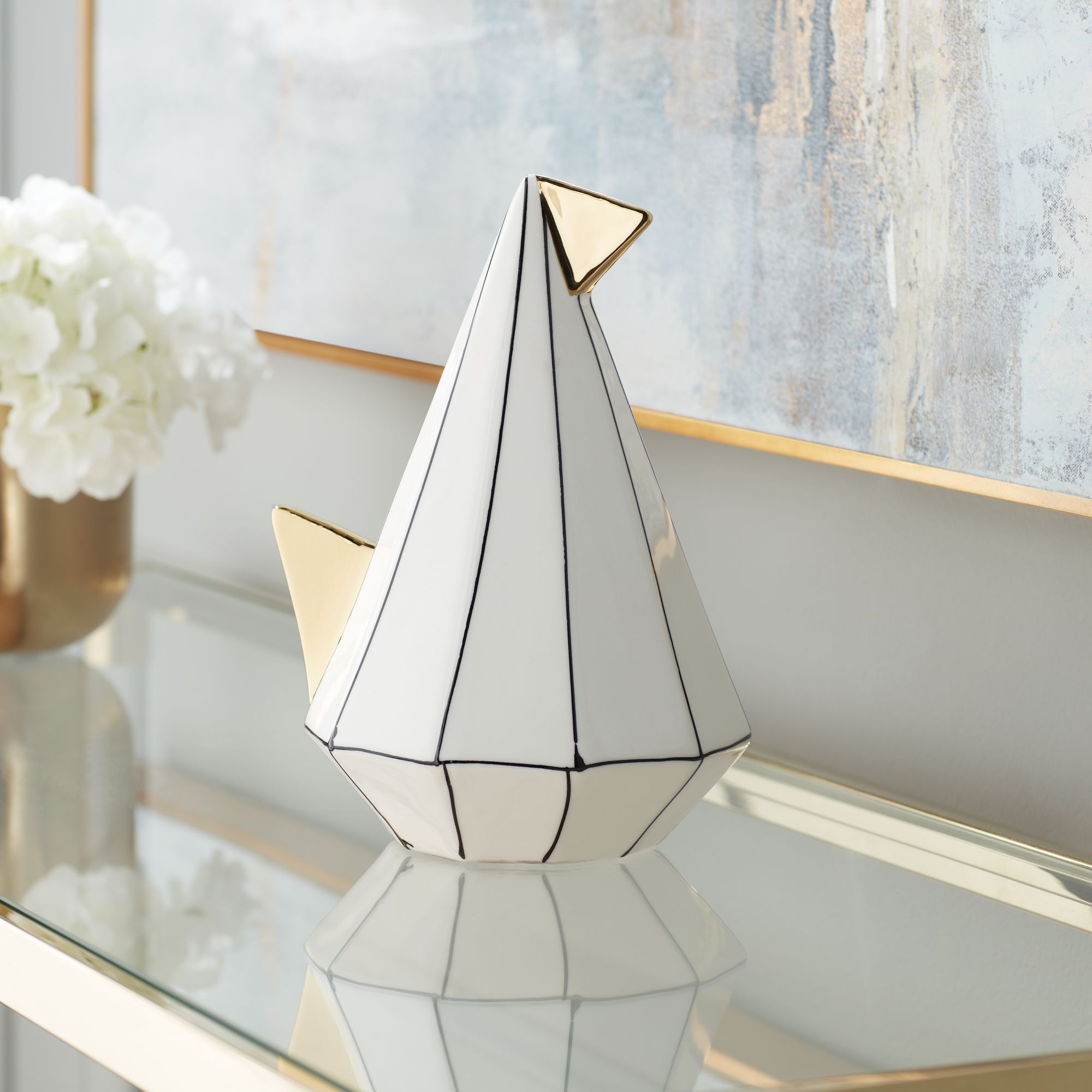 Dahlia Studios Sydney 9 3/4" White Ceramic Geometric Bird Ornament