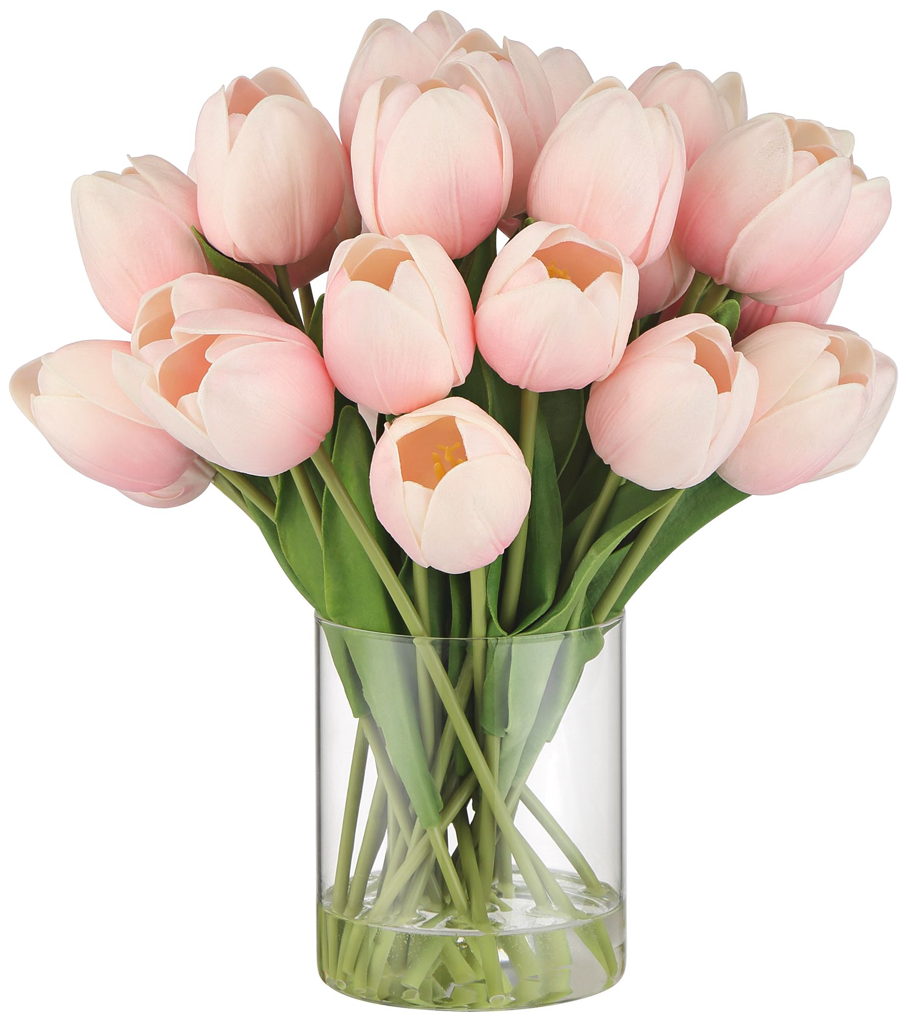 Emmie Pink Tulips 12" High Faux Flower in Clear Glass Vase