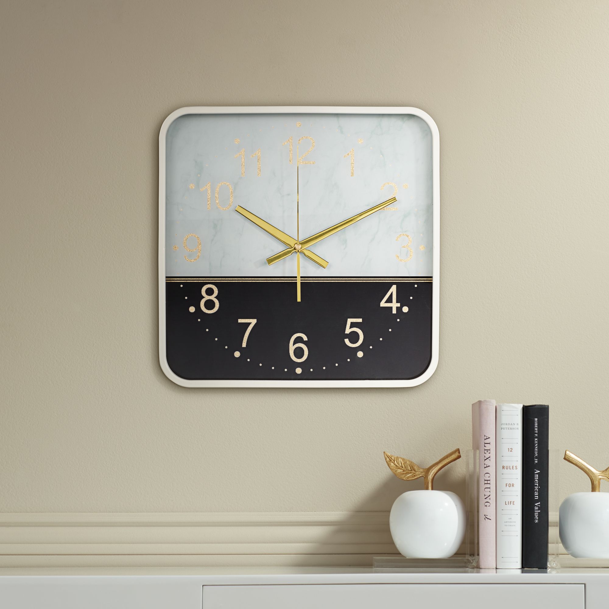 Newcastle Black and White 14 1/4" Square Battery Powered Wall Clock
