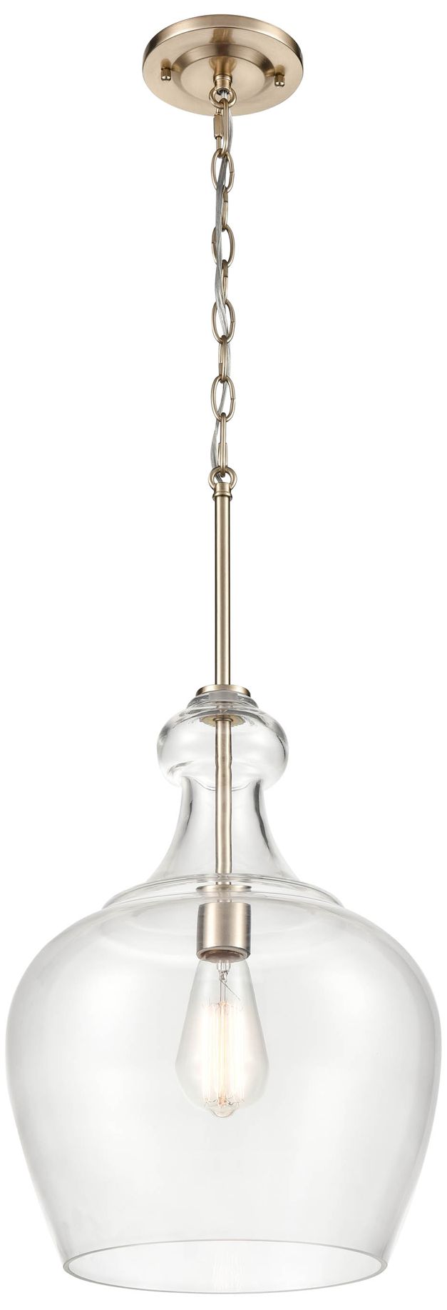 Lamara 15" Wide Vintage Brass and Clear Glass Pendant Light