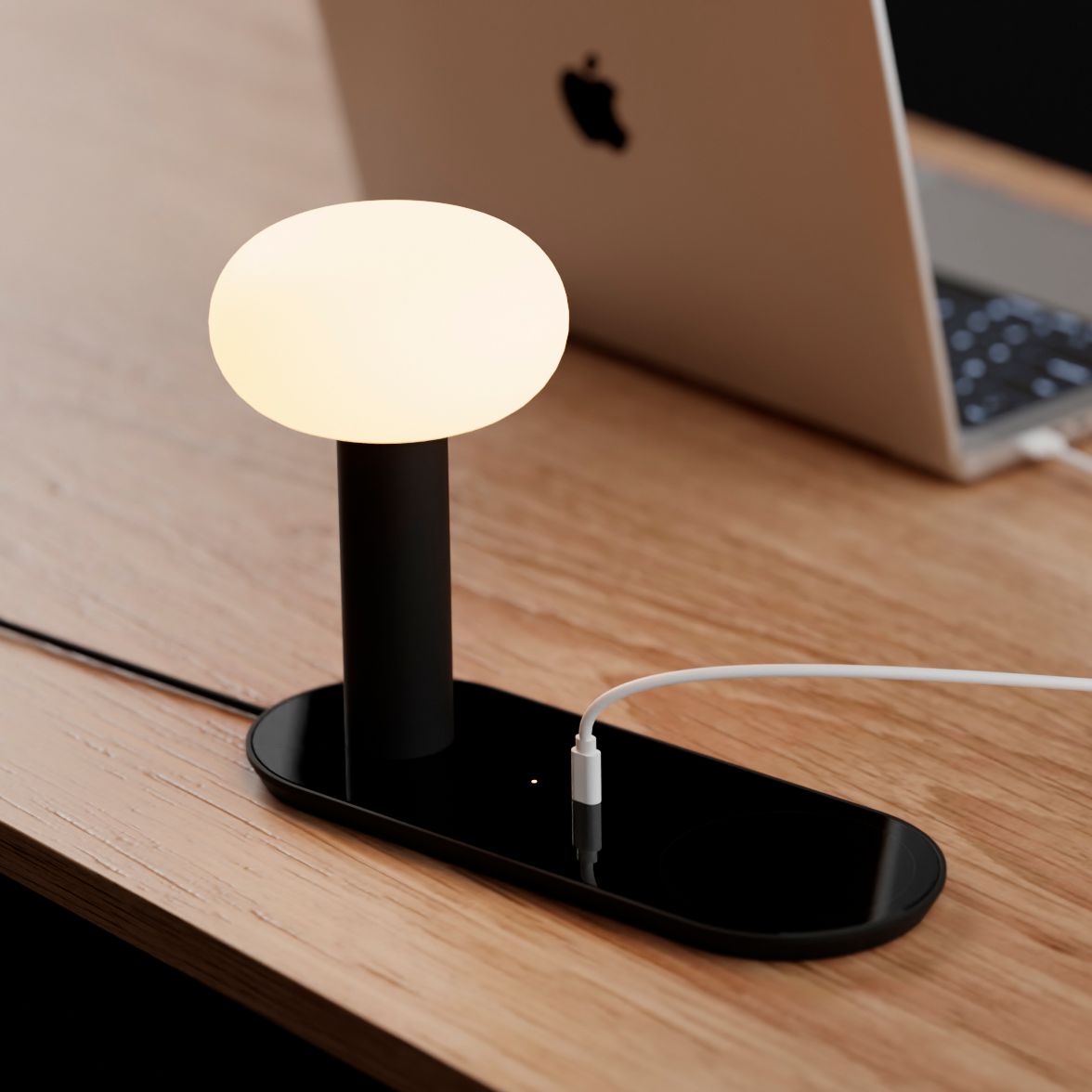 Koncept Combi 7 1/2" LED Lamp in Black with USB and Smart Charging Pad