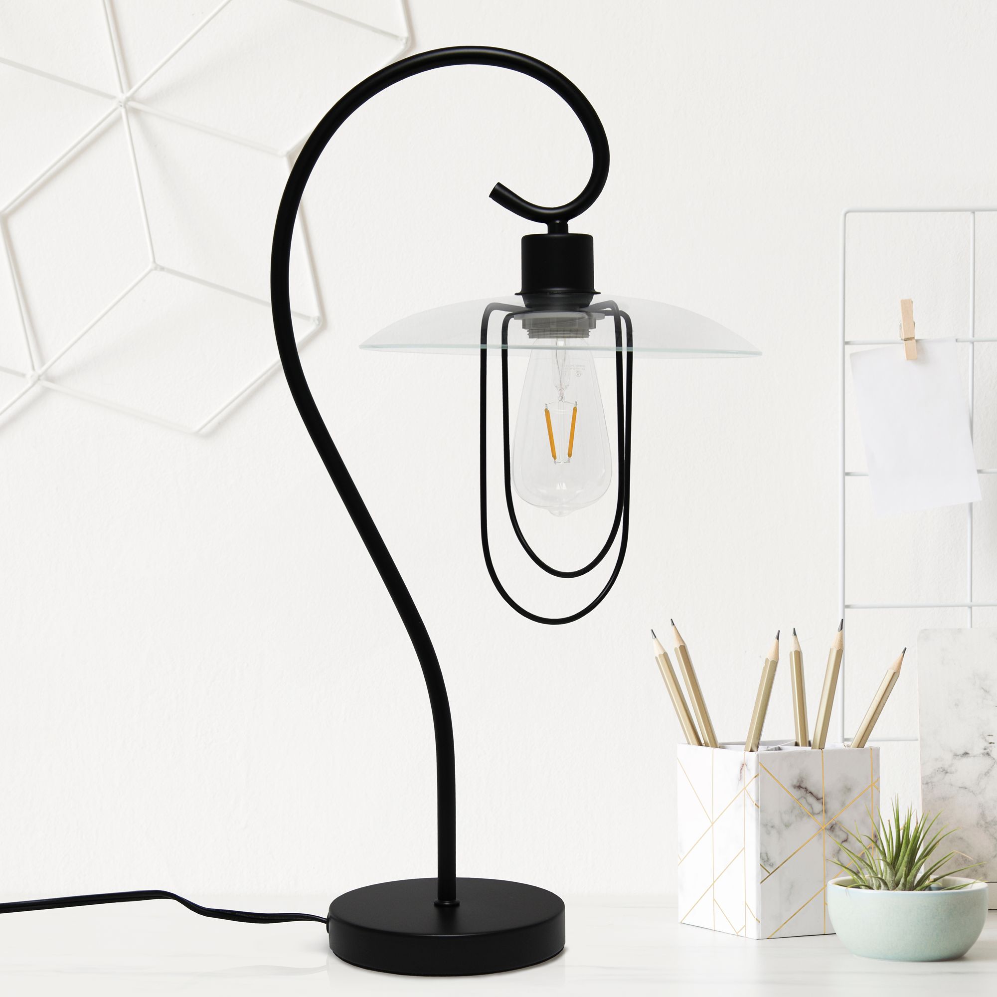 Elegant Designs 21" Black Leather Table Lamp with USB Port