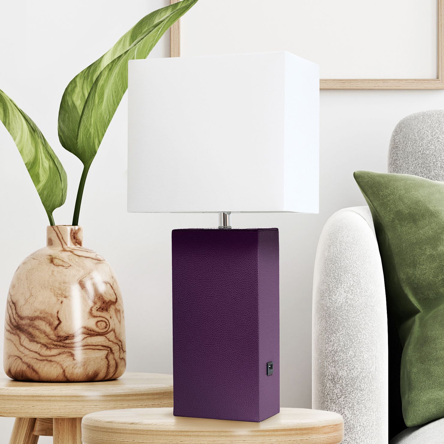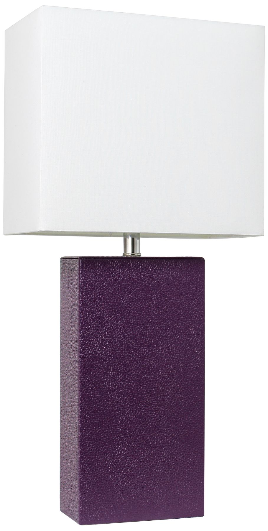 Elegant Designs 21" Modern Eggplant Purple Leather Table Lamp