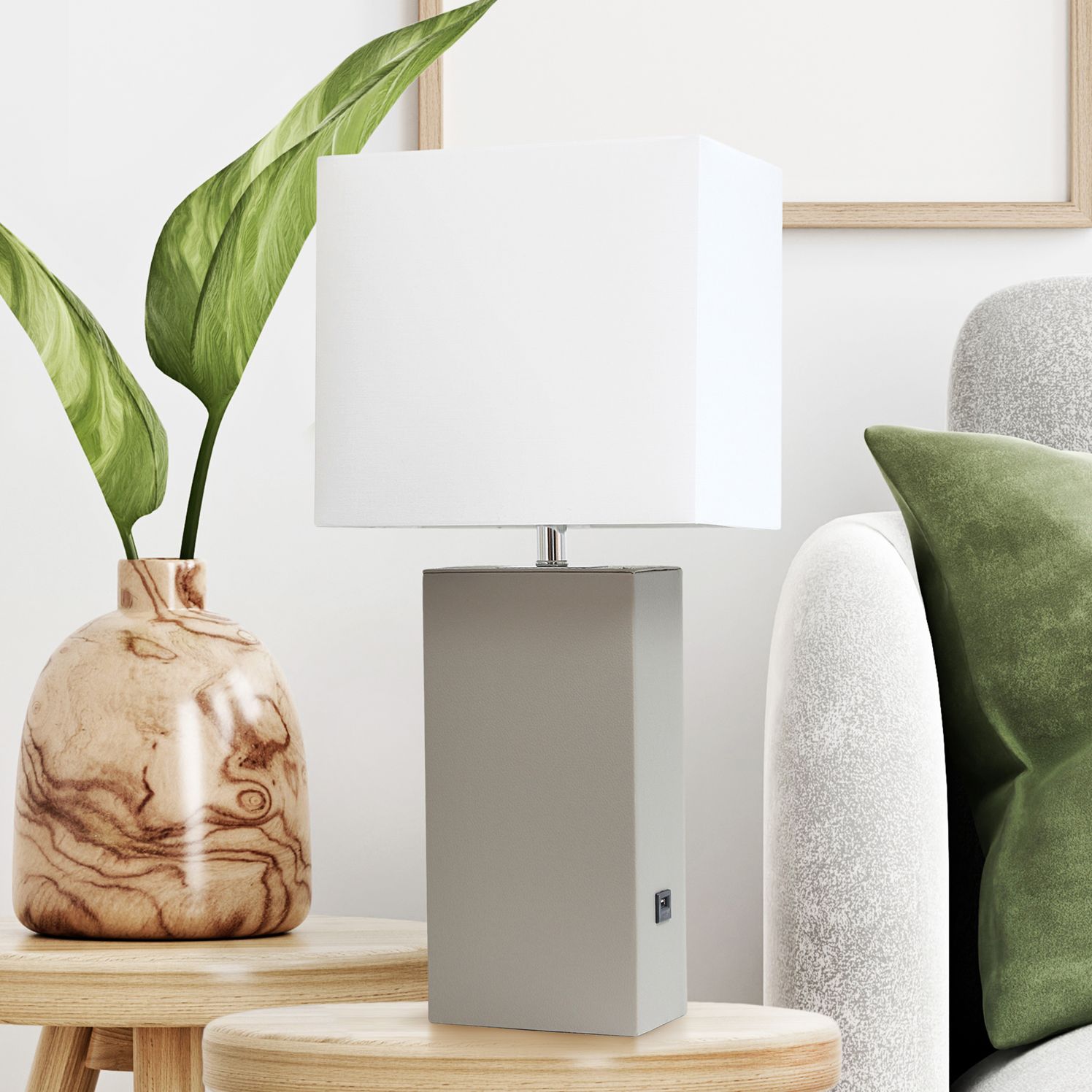 Lalia Home 21" Lexington Gray Leather USB Accent Table Lamp