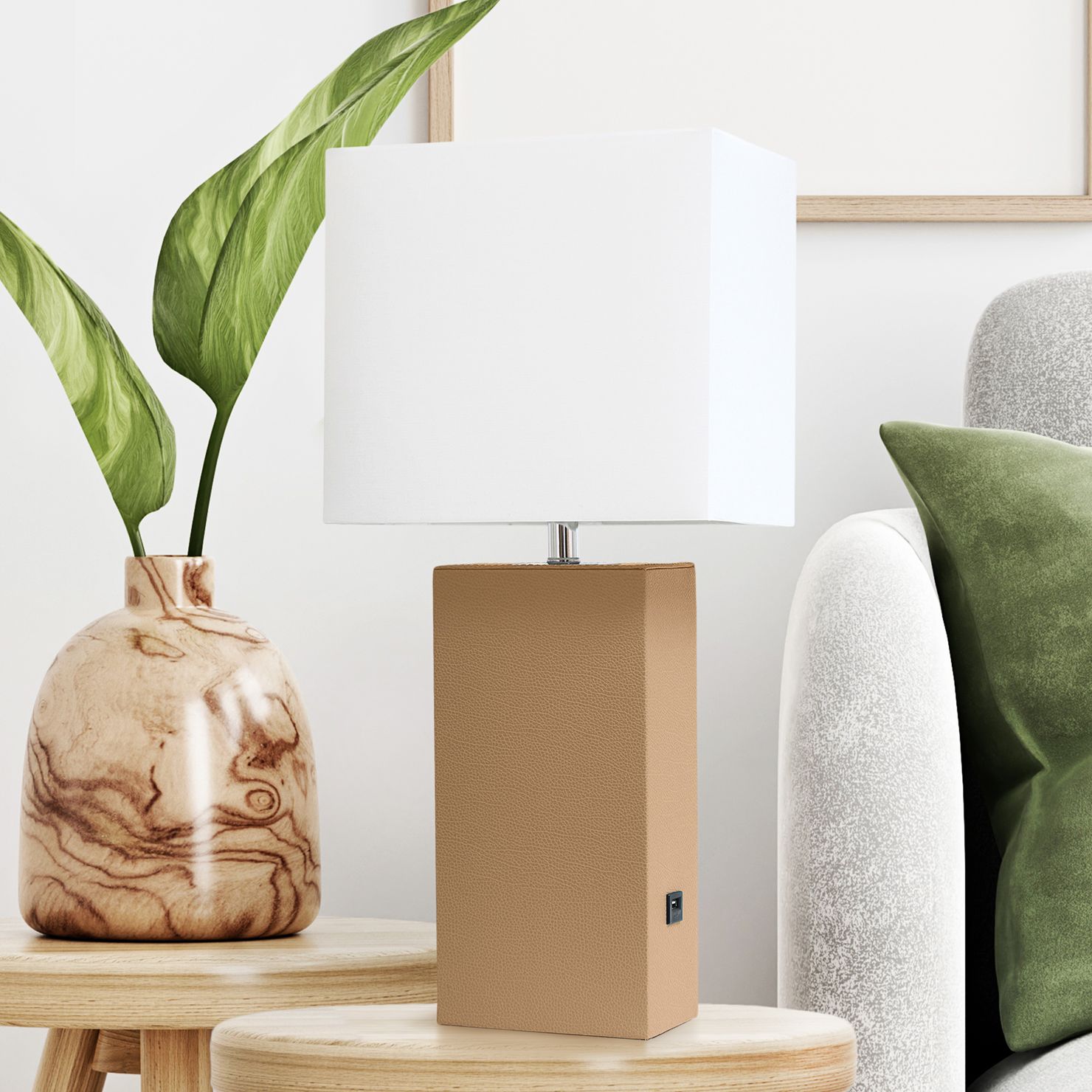 Lalia Home Lexington 21" Beige Leather USB Accent Table Lamp
