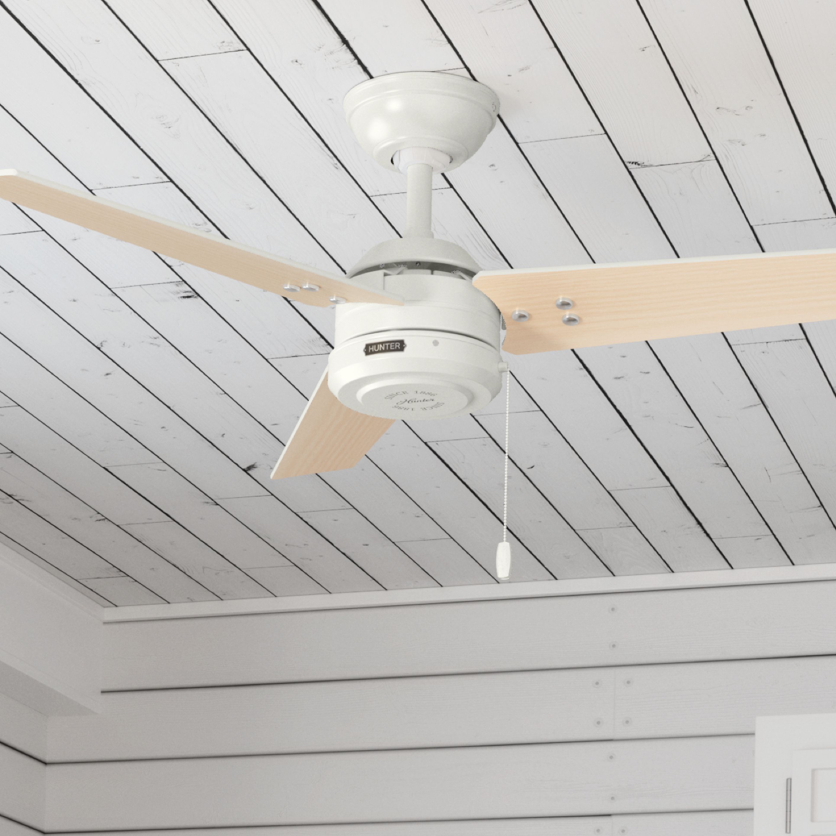 44" Hunter Cassius Fresh White Damp Rated Ceiling Fan with Pull Chain
