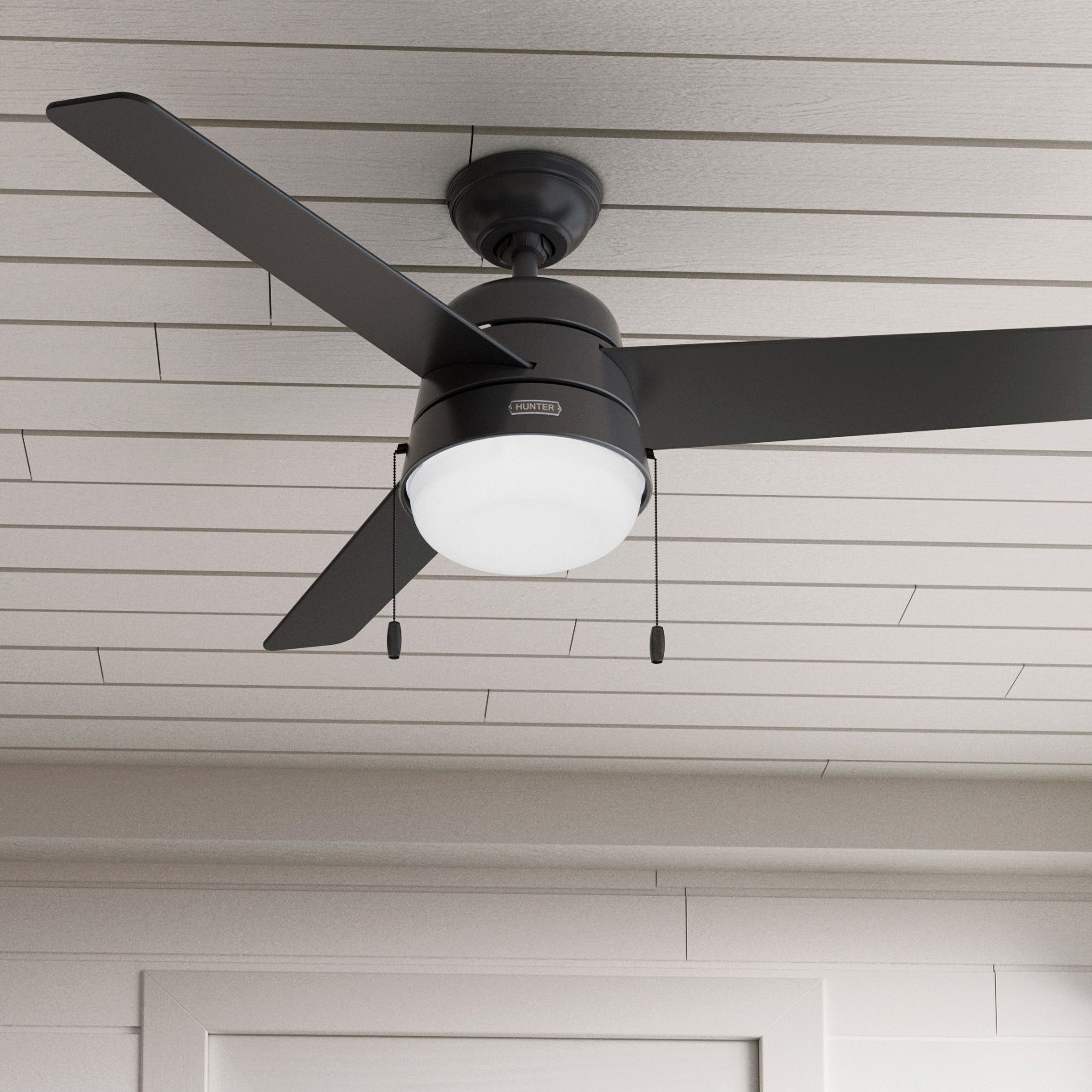 52" Hunter Aker Matte Black Damp Rated Ceiling Fan with LED Light Kit