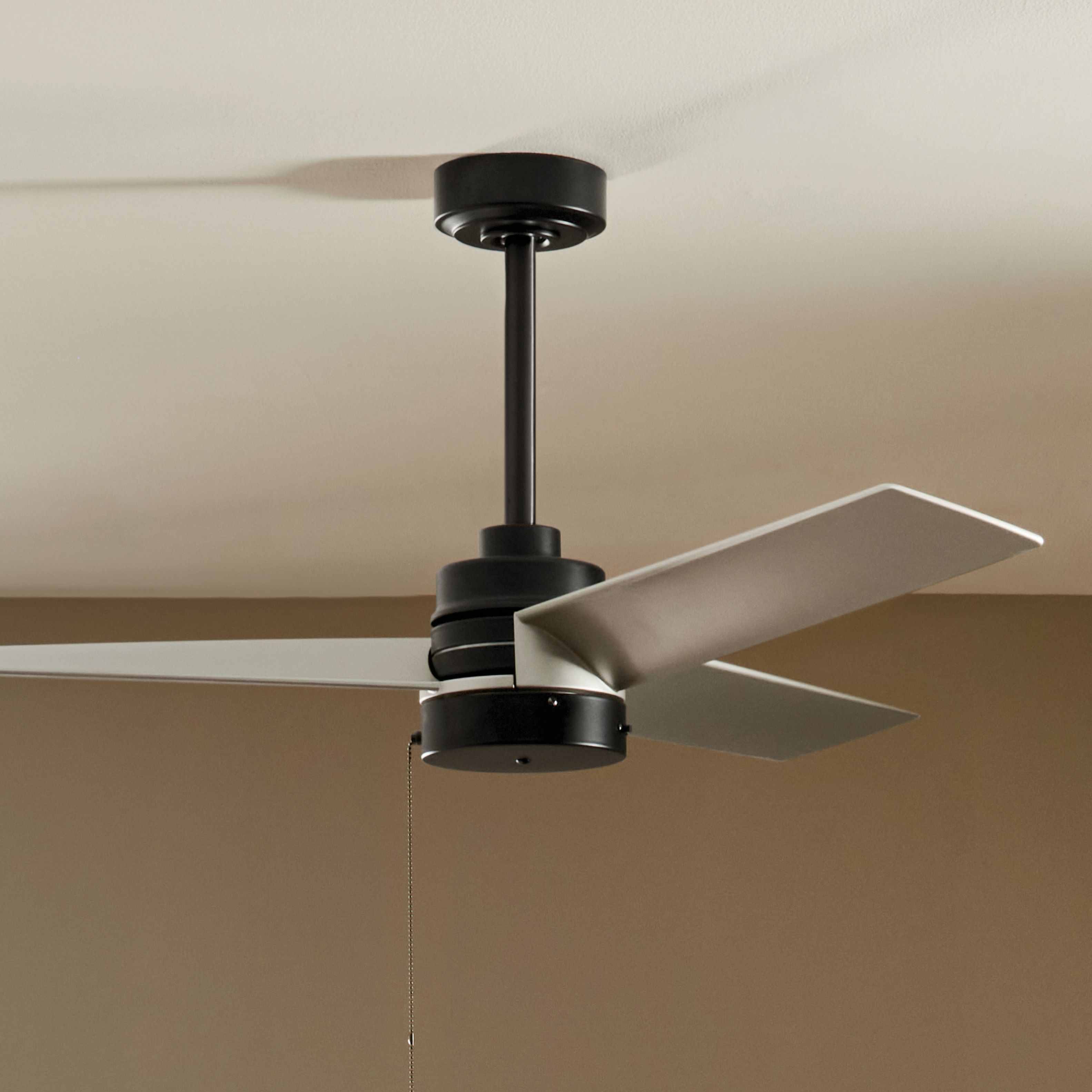 52" Kichler Spyn Lite Satin Black Silver Blades Pull Chain Ceiling Fan