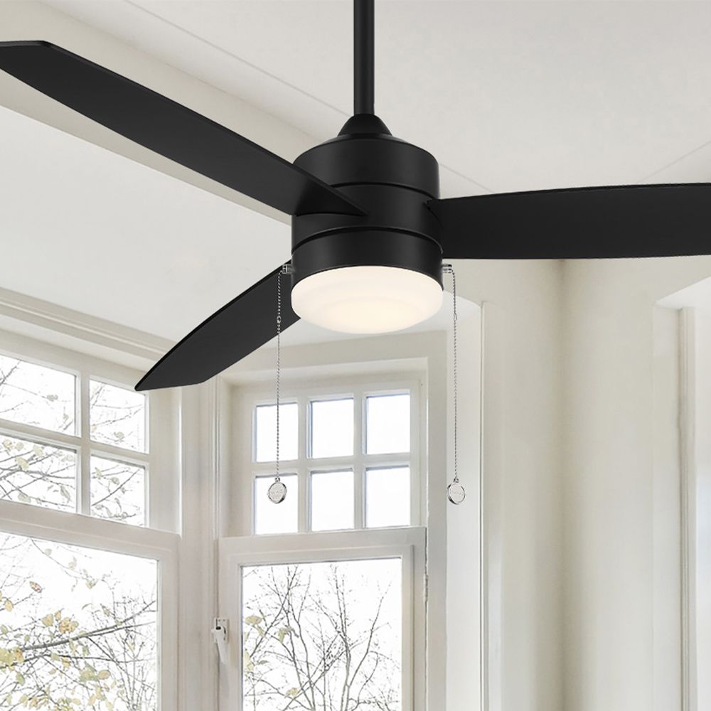 52" WAC Limited Atlantis Matte Black LED Ceiling Fan with Pull Chain