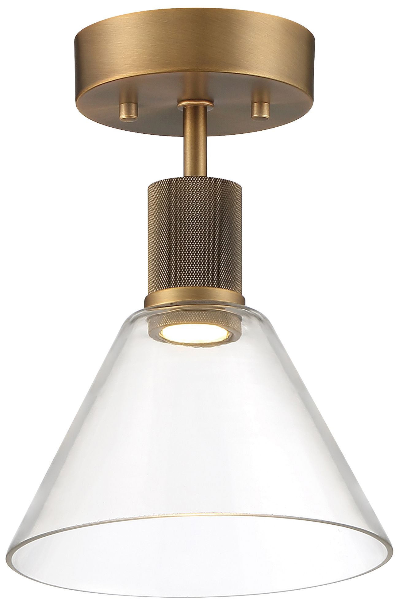Ballston Cone 8" Wide Semi-Flushmount Satin Gold Cone Ceiling Light