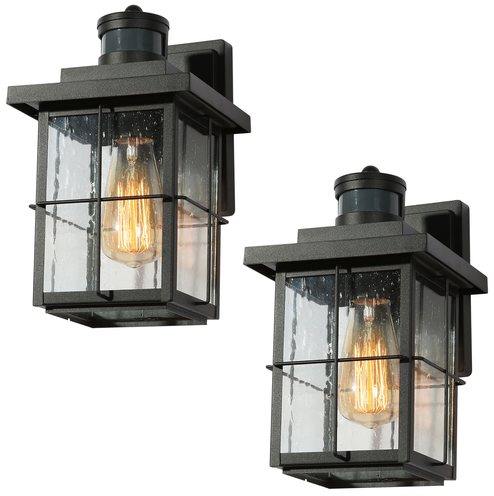 LNC Lighting Stan 10 1/2" Black Mission Outdoor Wall Lights Set of 2