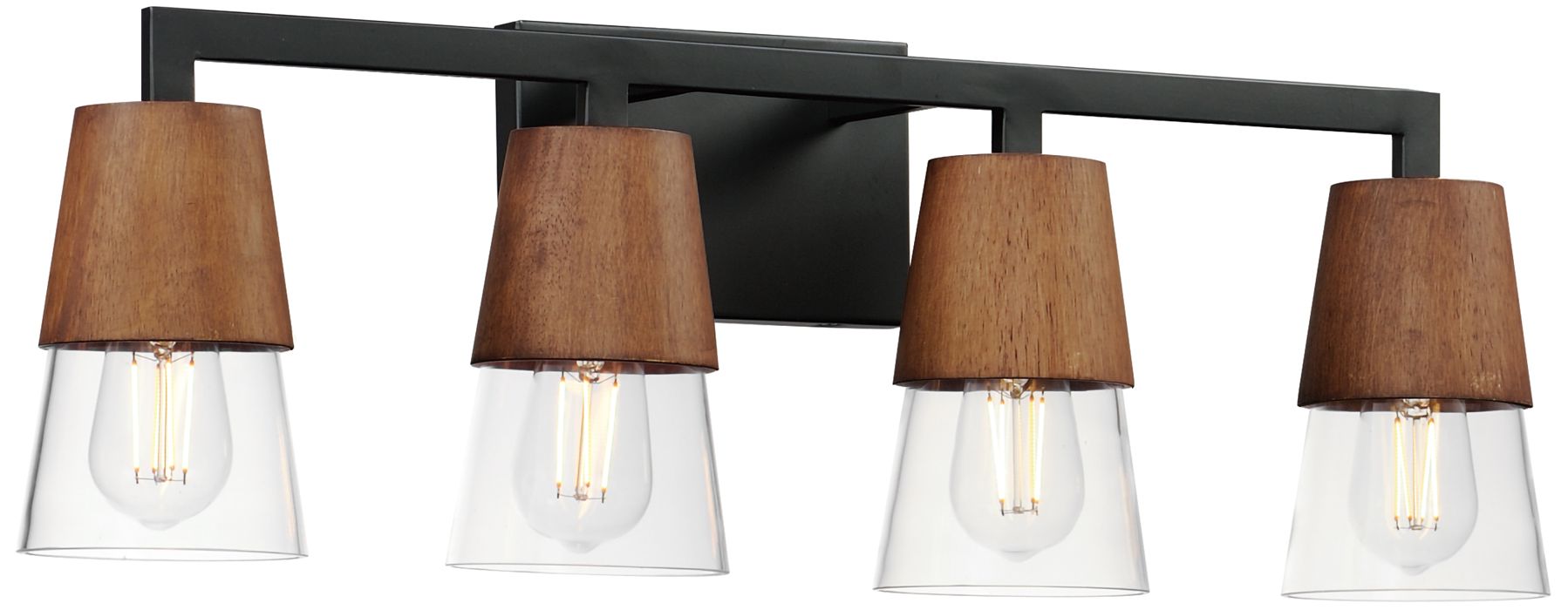 Maxim Carpenter 28 1/4"W Walnut and Black 4-Light Bath Light