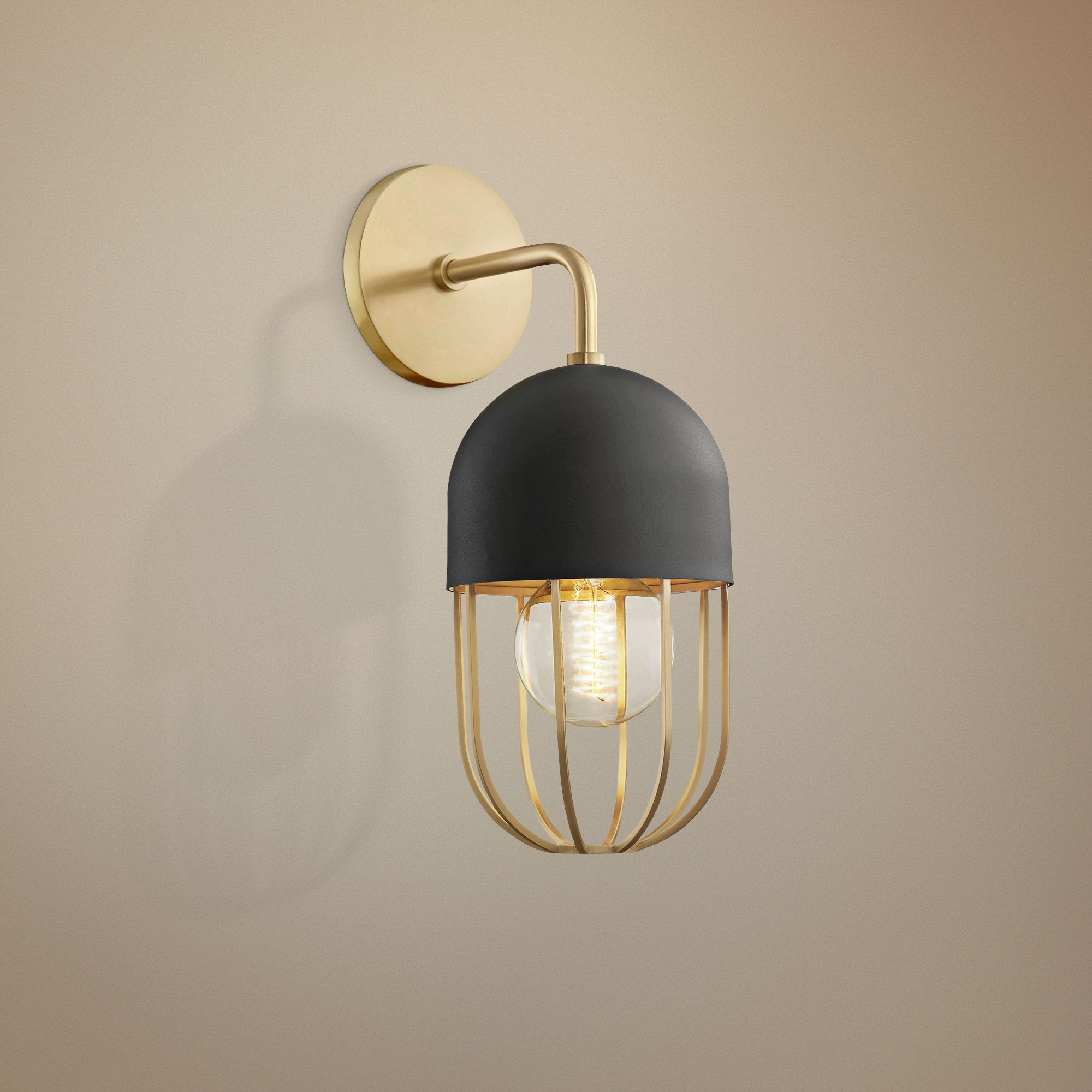 Sofia 6" High Matte Black and Aged Brass Wall Sconce
