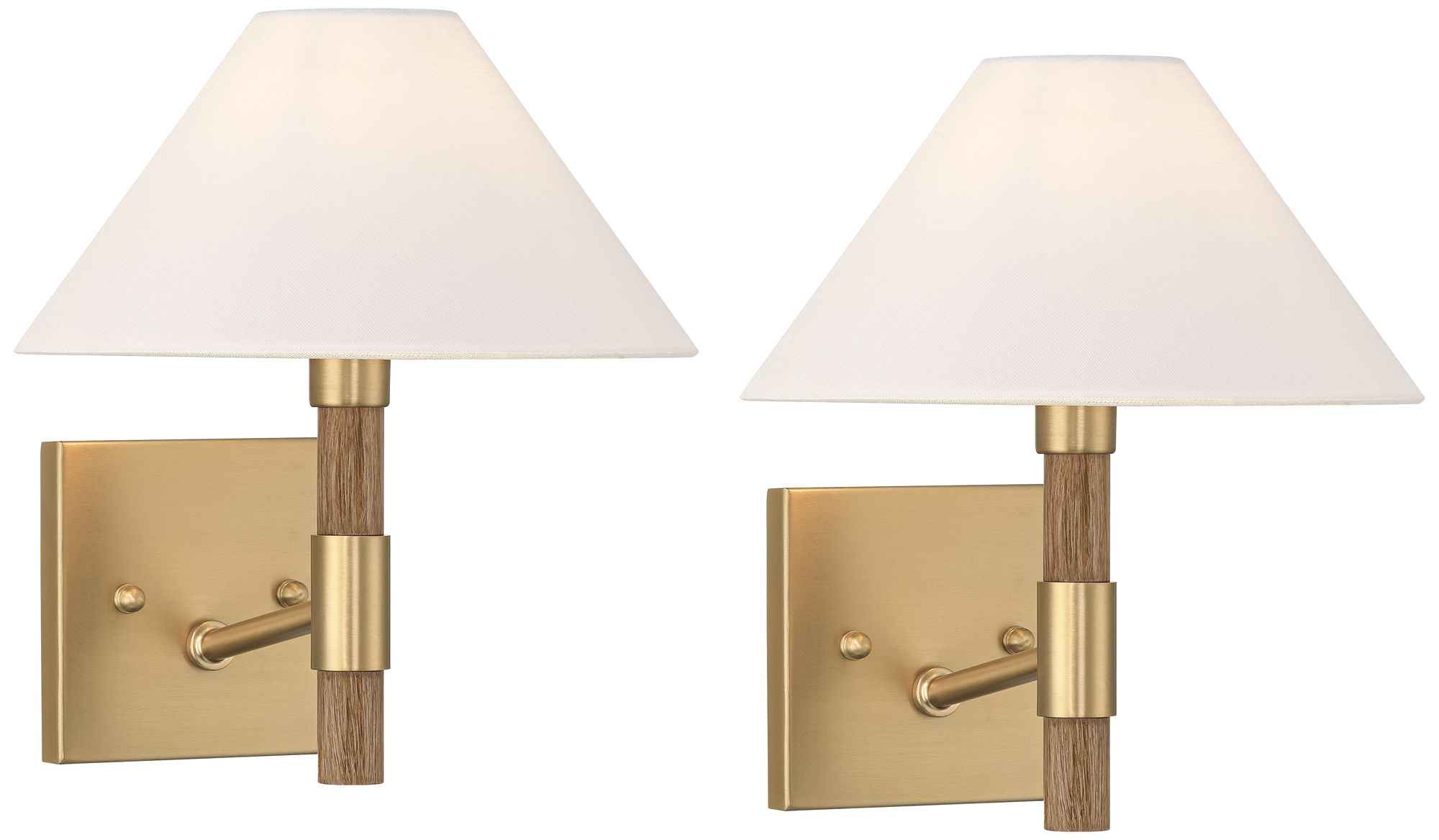 Possini Euro Conrad 11"H Brushed Champagne Wood Wall Sconce Set of 2