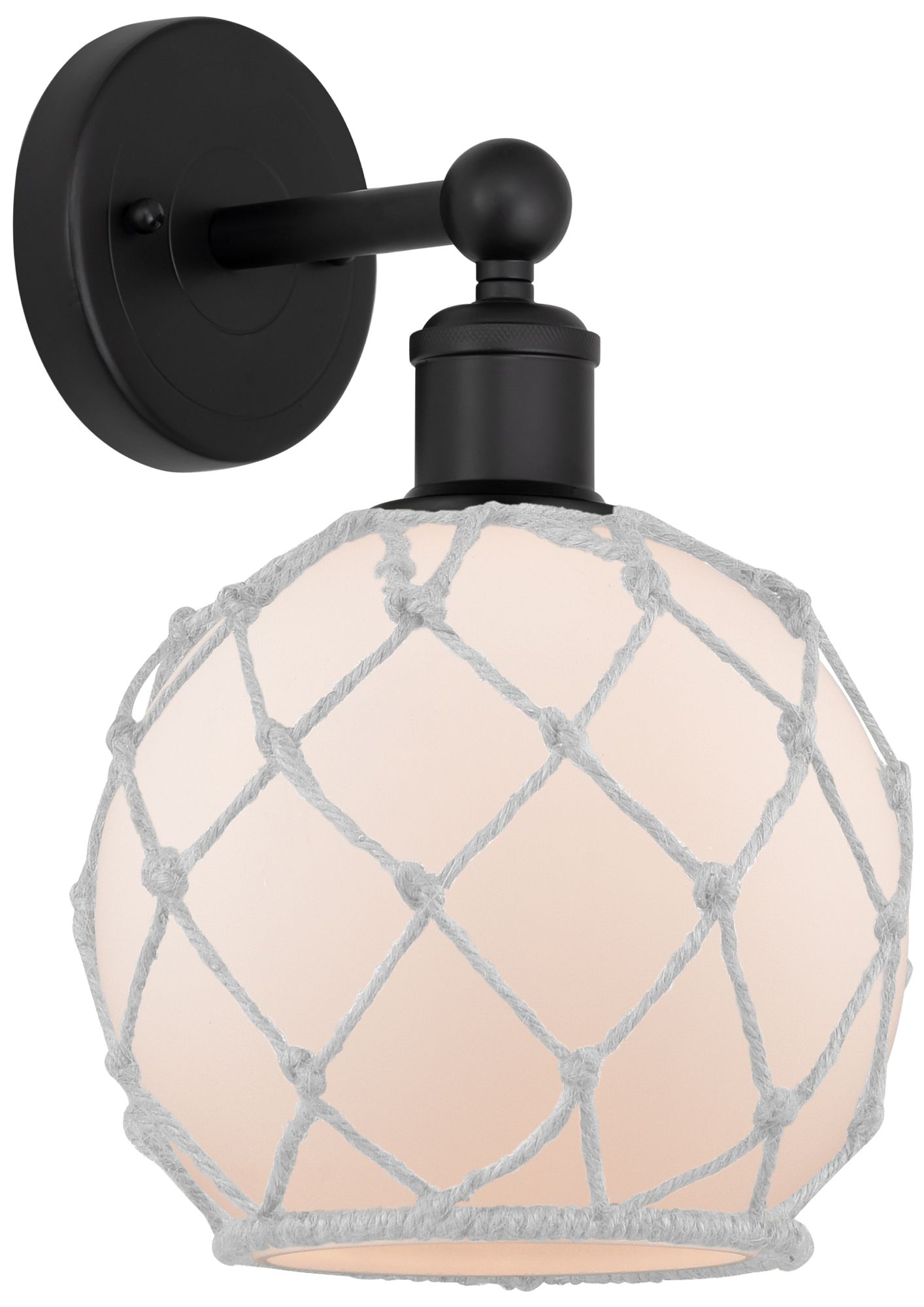 Edison Farmhouse Rope 12"H Matte Black Sconce With White Glass Shade