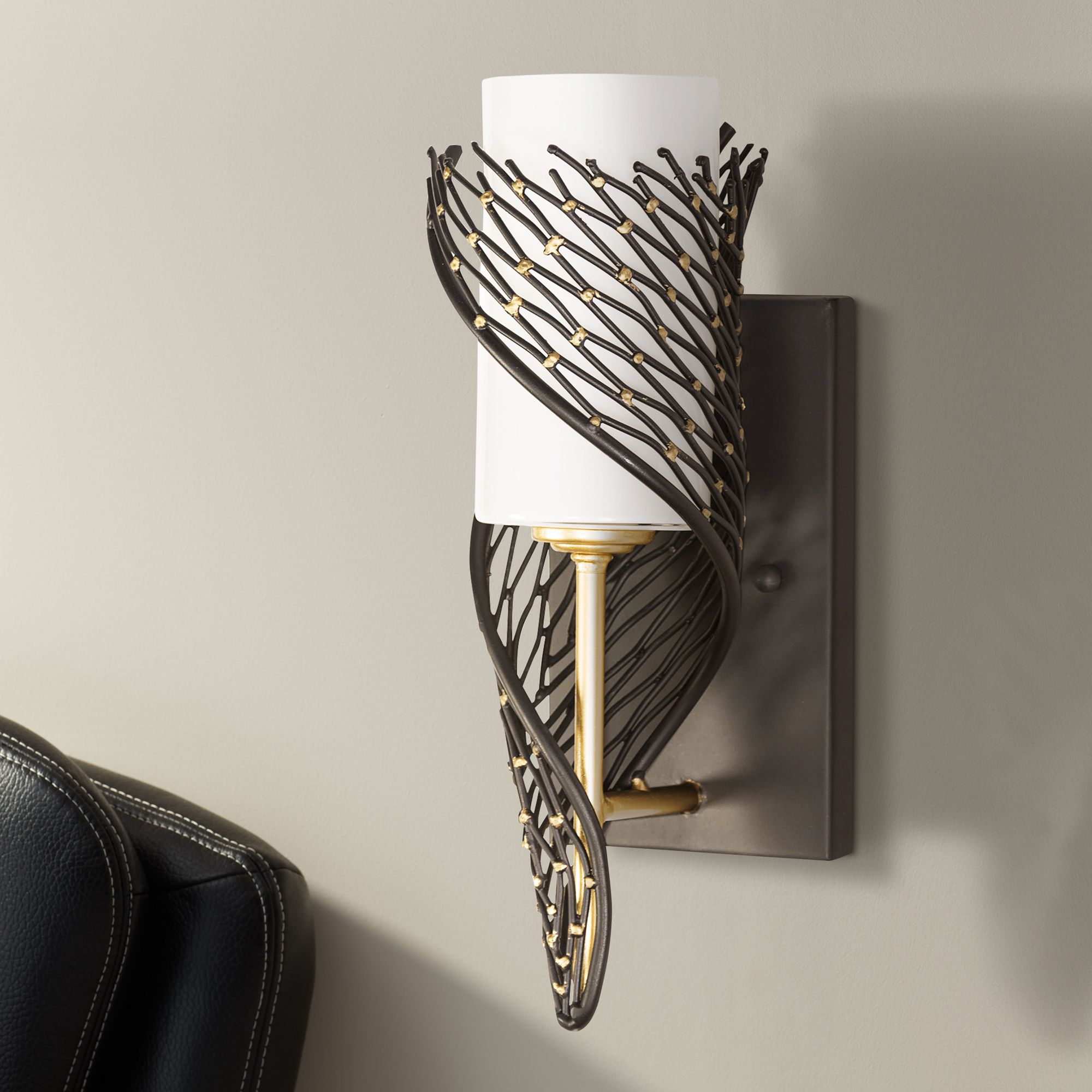 Woven Rattan 12"H Black Antique Brass 2-Light Wall Sconce