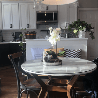Soft white petals and an elegant gold finish pot makes this faux orchid floral piece a beautiful addition to any home.