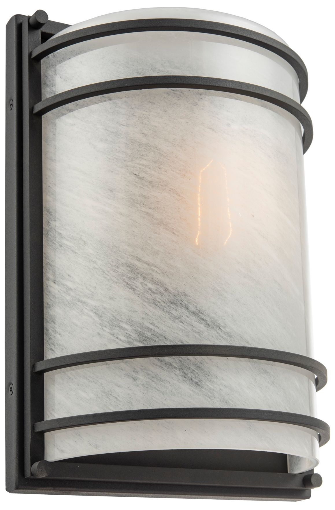 Marine 6.75" Wide Black Outdoor Wall Light With Semi-White Glass Shade