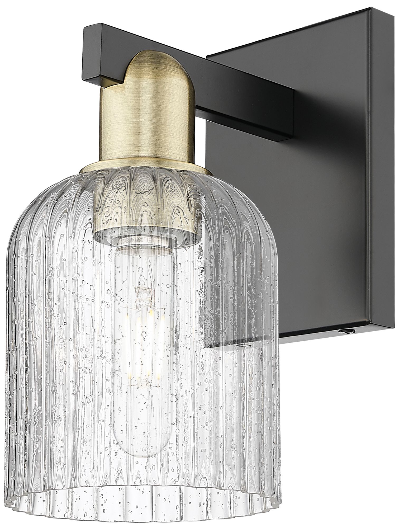 Bridal Veil 10.75"H Black Antique Brass Wall Sconce With Seedy Shade