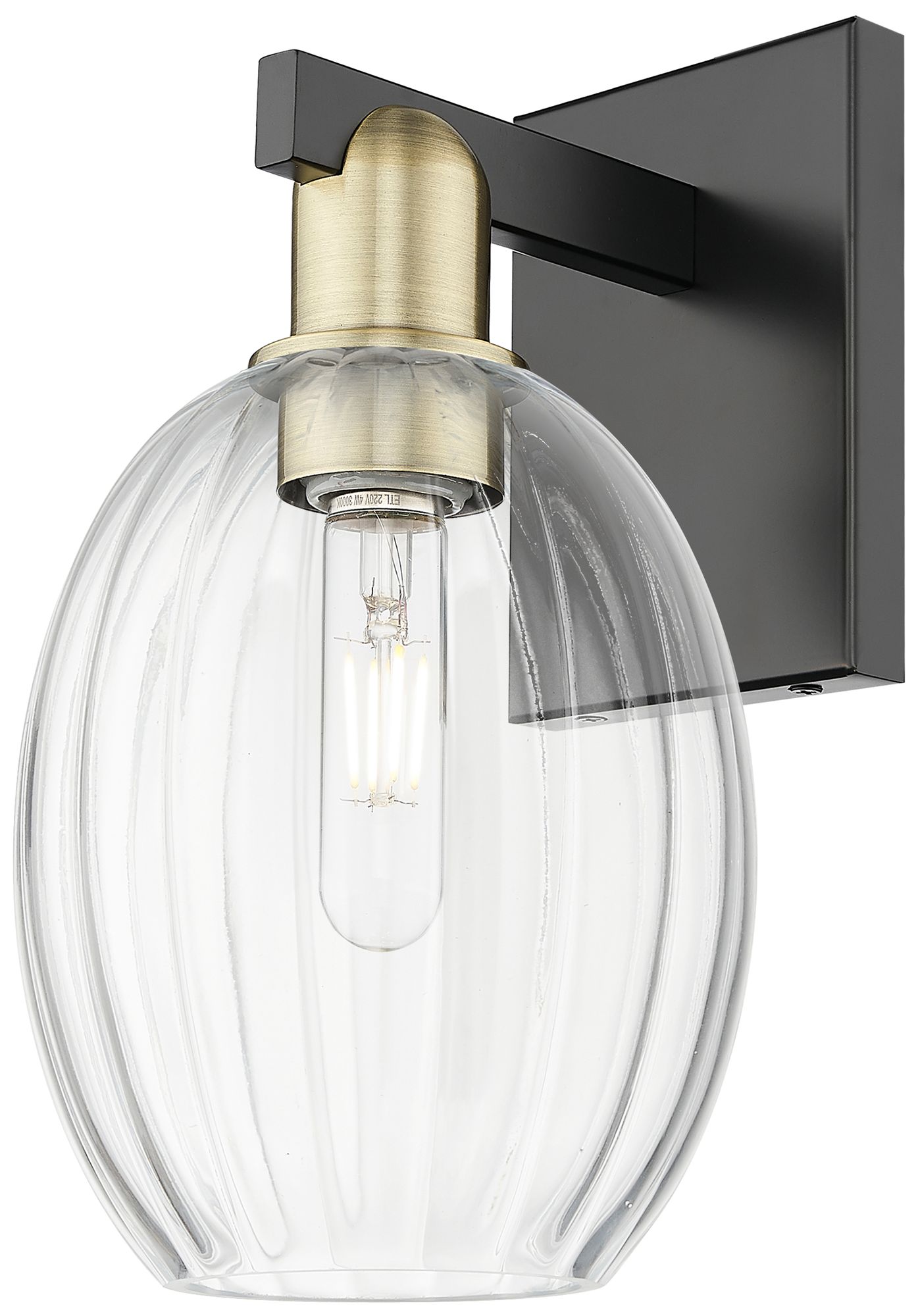 Bridal Veil 10.75"H Black Antique Brass Wall Sconce With Clear Shade