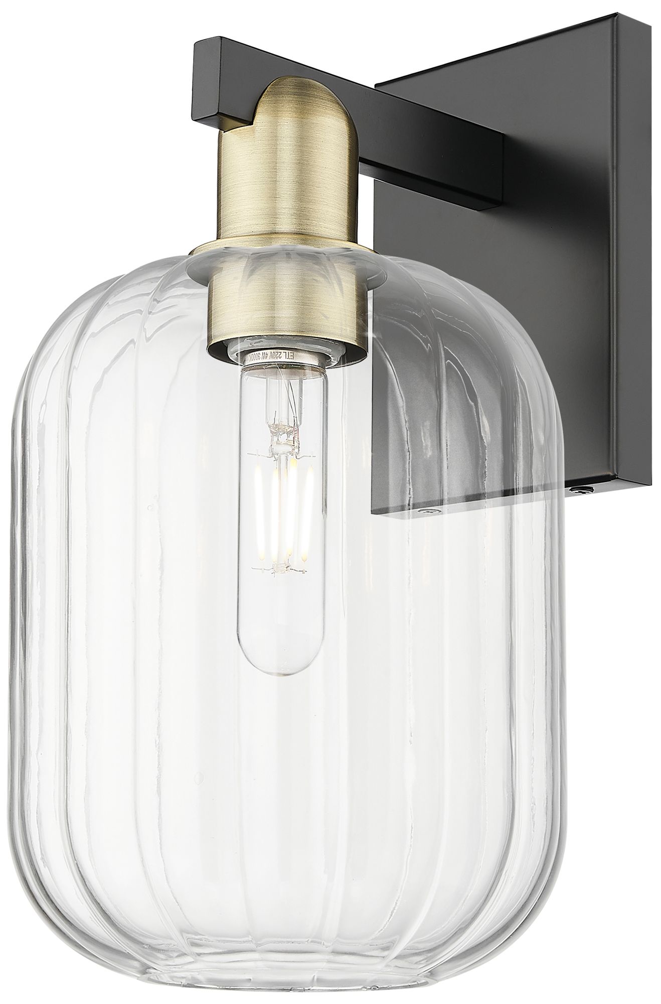 Preston 11.75"H Black Antique Brass Wall Sconce With Clear Globe Shade