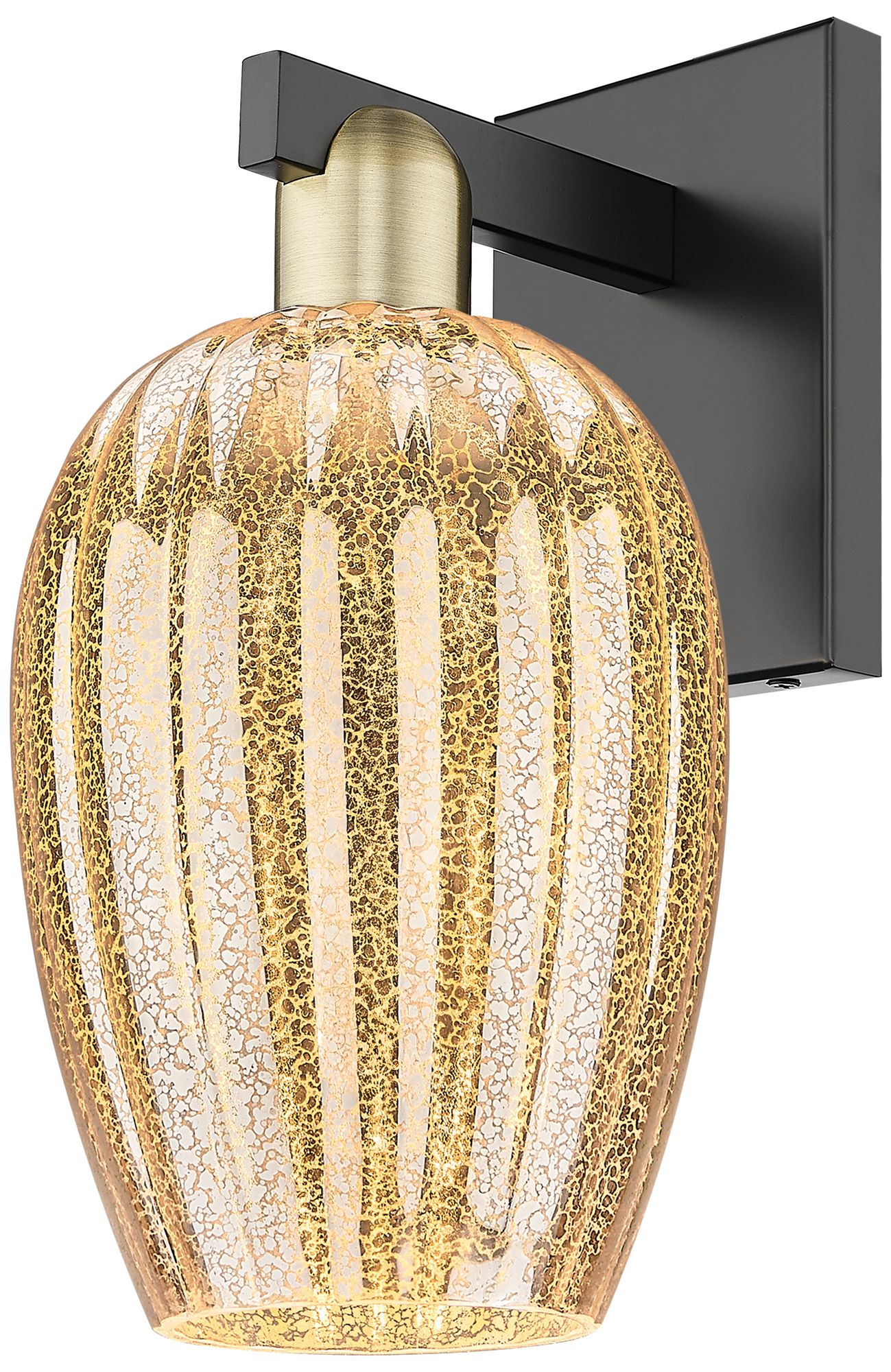 Preston 13.5"H Black Antique Brass Wall Sconce With Mercury Flute Shade