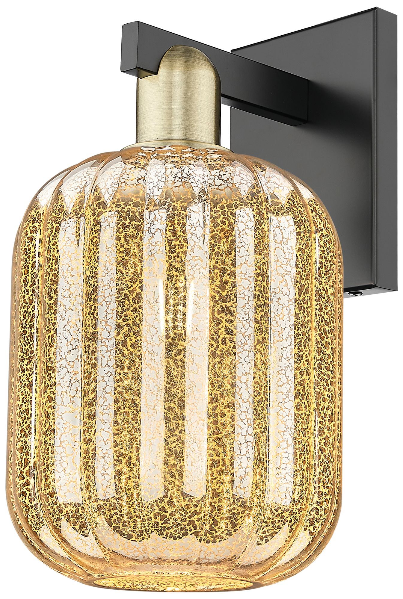 Preston 13.5"H Black Antique Brass Wall Sconce With Mercury Jar Shade
