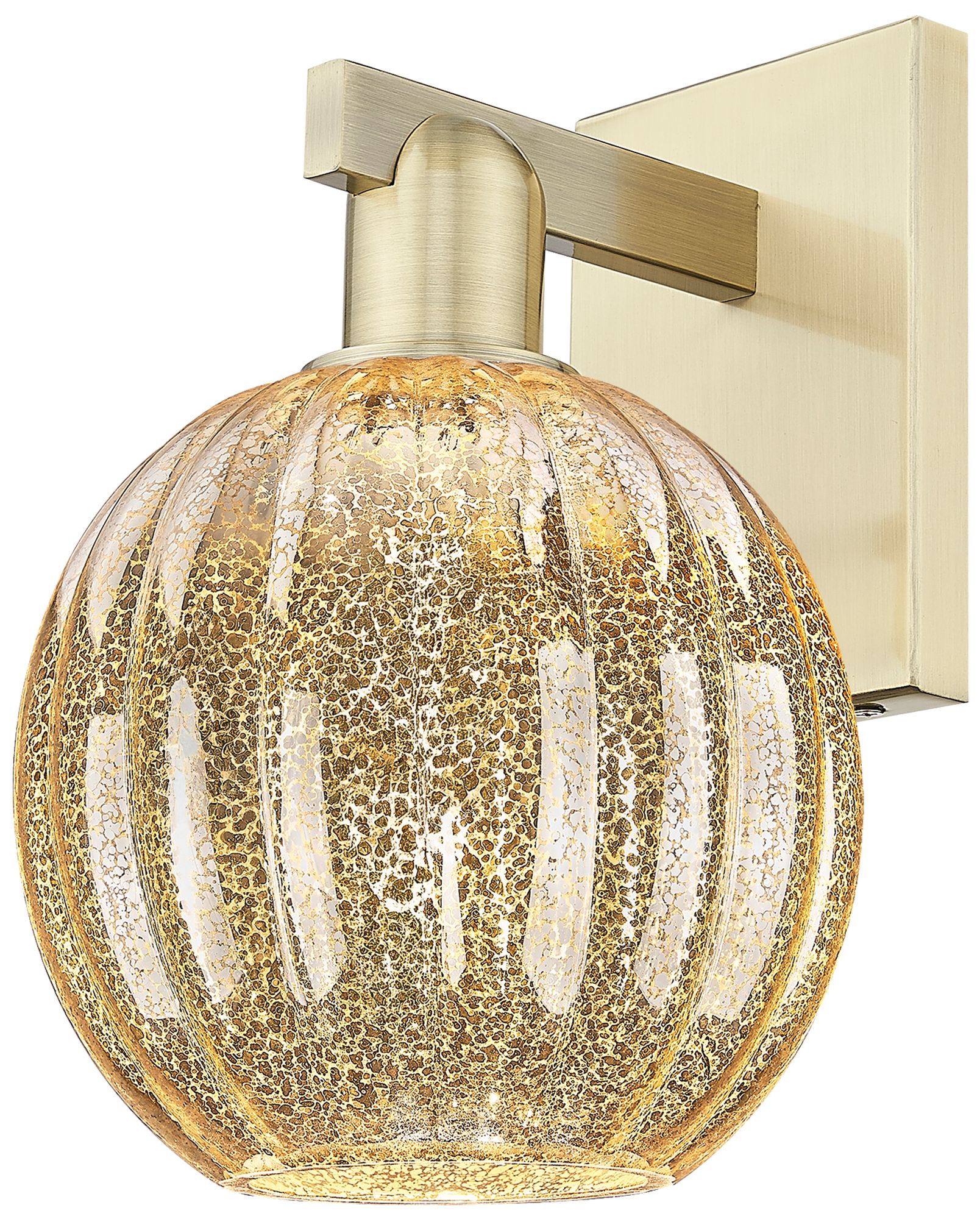 Preston 7" High Antique Brass Wall Sconce With Mercury Globe Shade