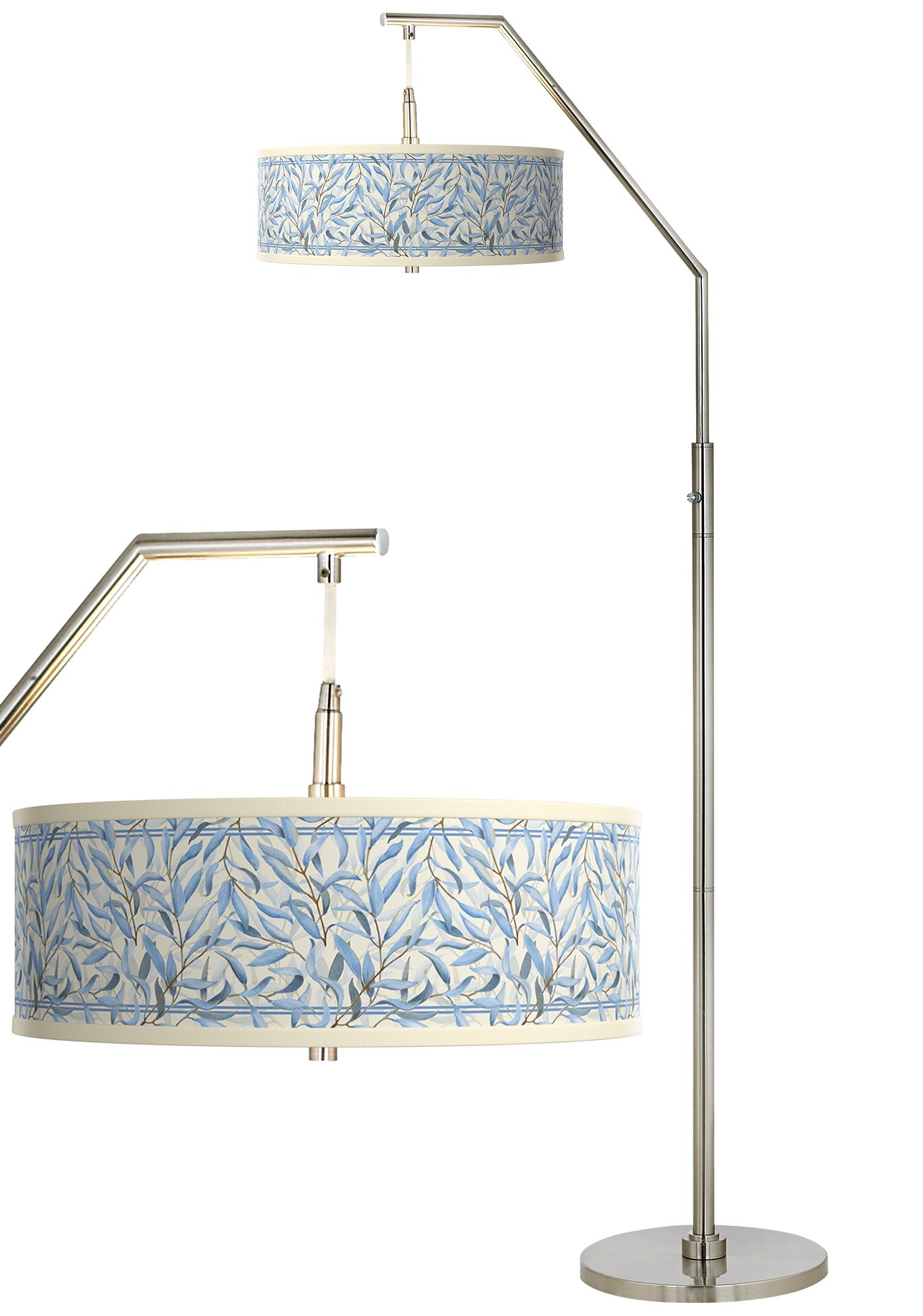 All Silver Giclee Shade Arc Floor Lamp