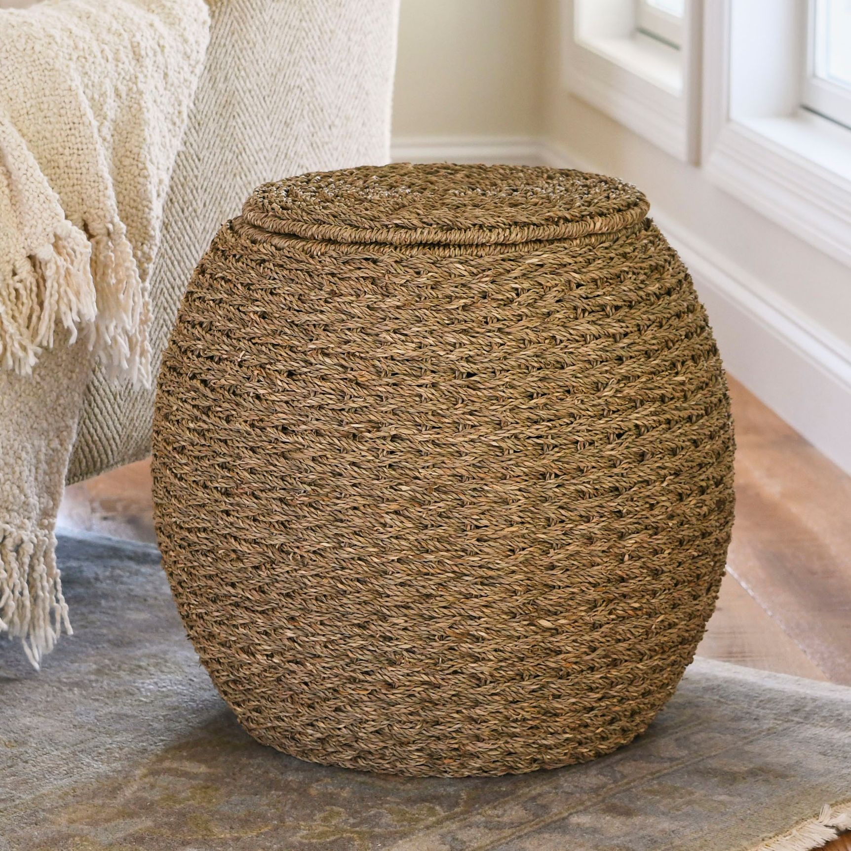 Handwoven Seagrass Barrel Wicker Storage Basket Side Table, Natural