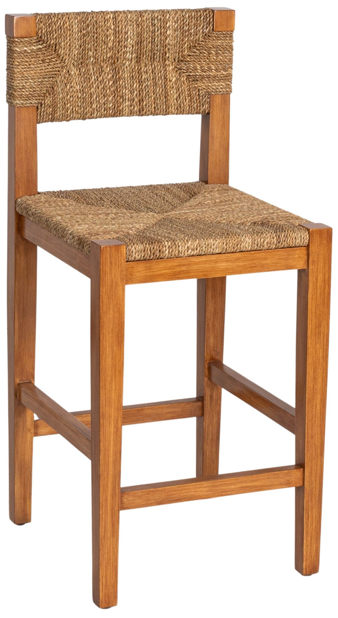Mahogany Wood & Natural Woven Seagrass Rope Counter Height Stool with Back